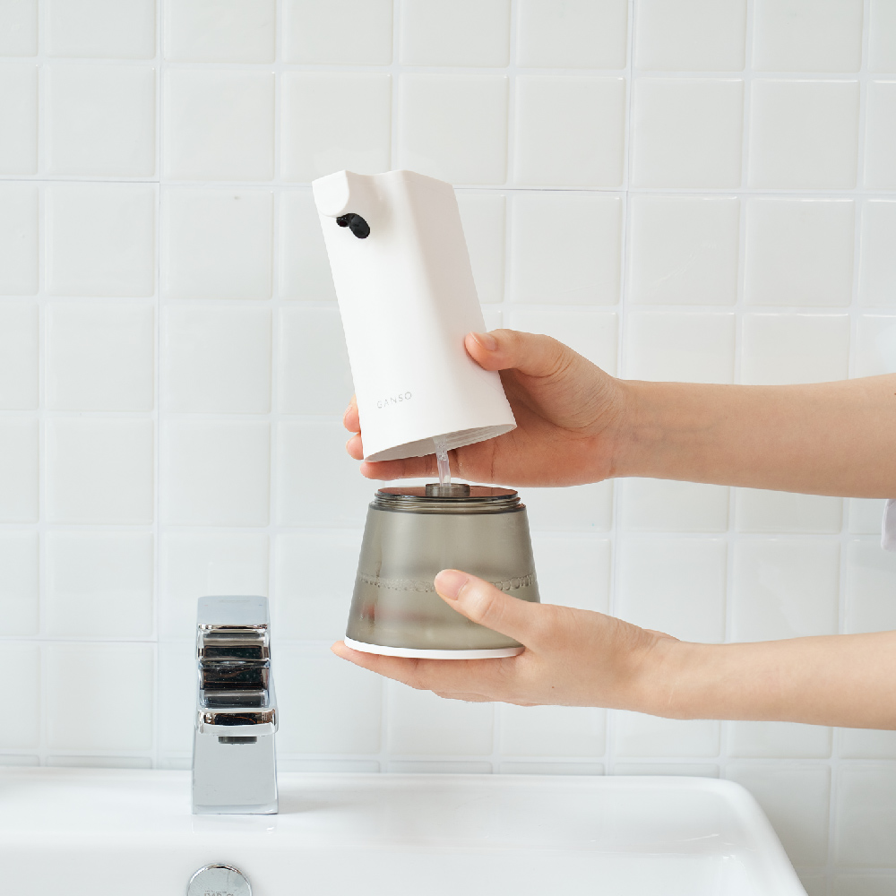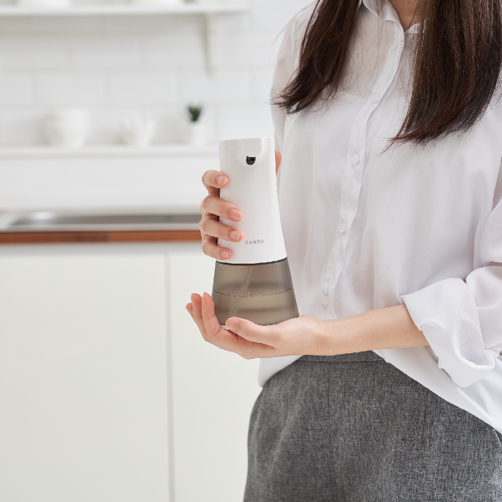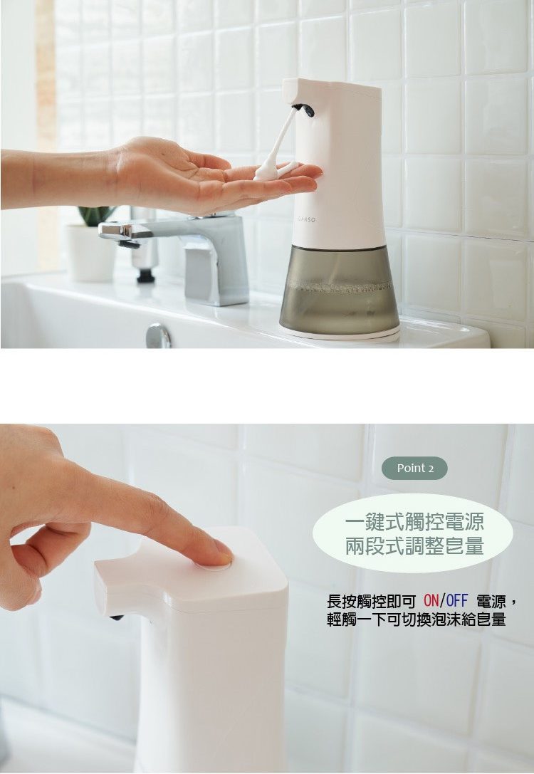 - 一鍵式觸控電源,兩段式調整皂量:長按觸控即可on/off電源,輕觸一下可切換泡沫給皂量。