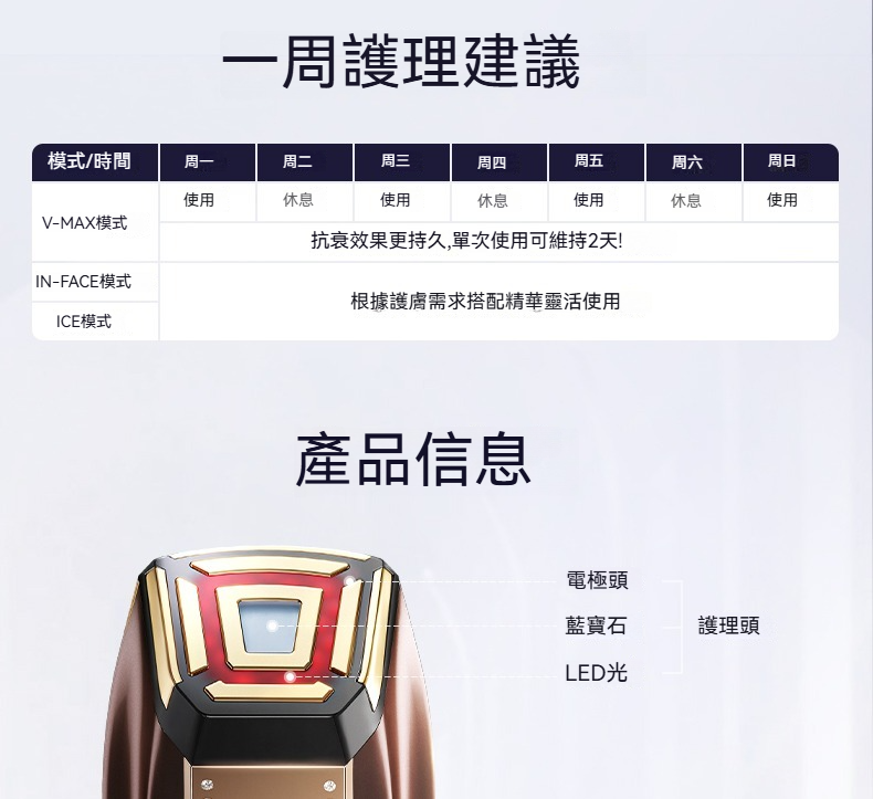 全臉提拉緊緻模式/冰敷舒緩修護模式