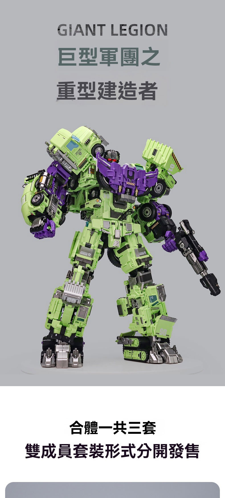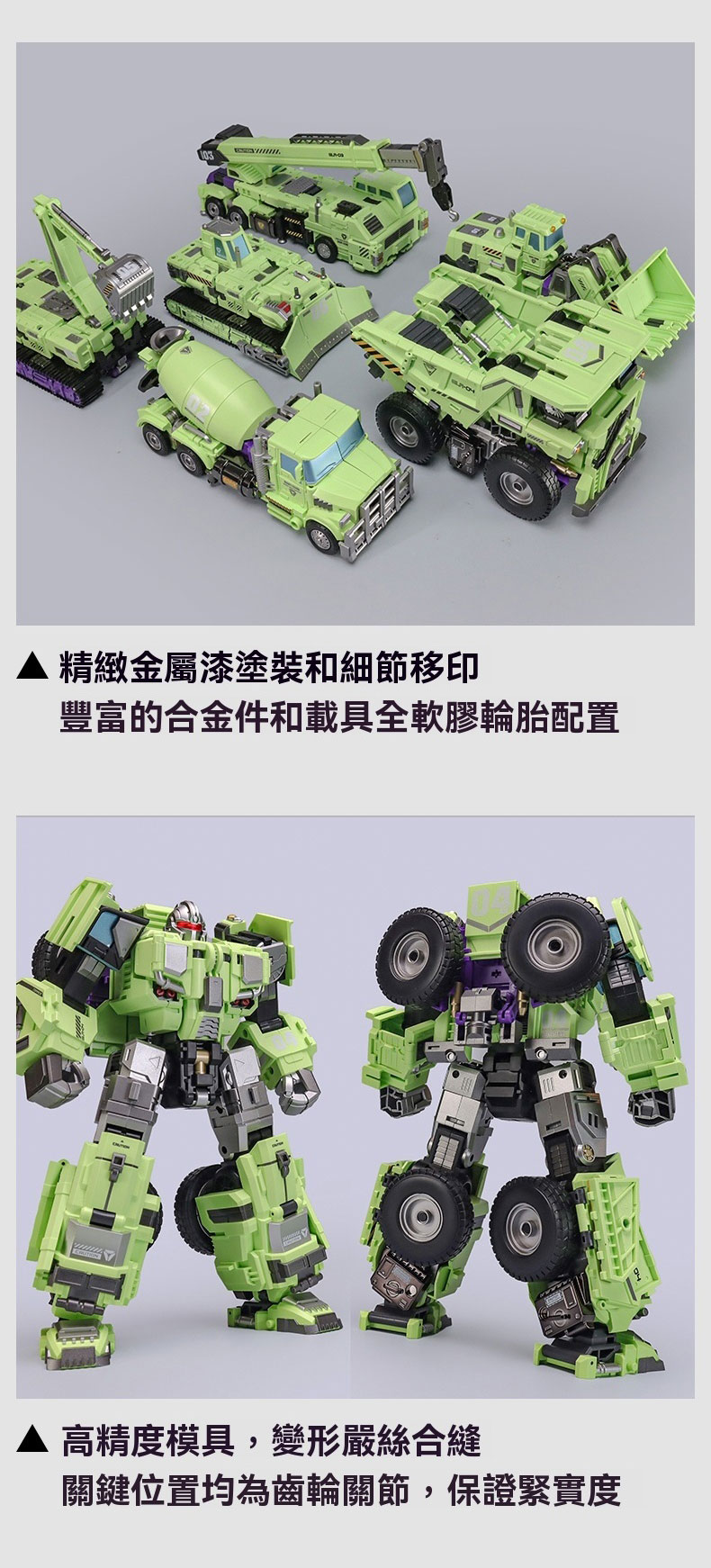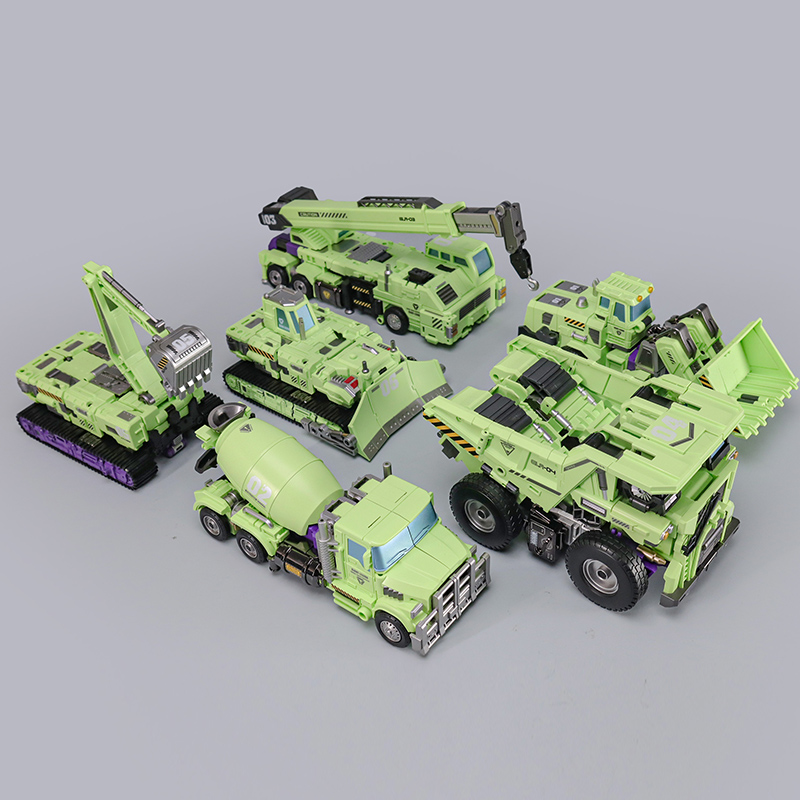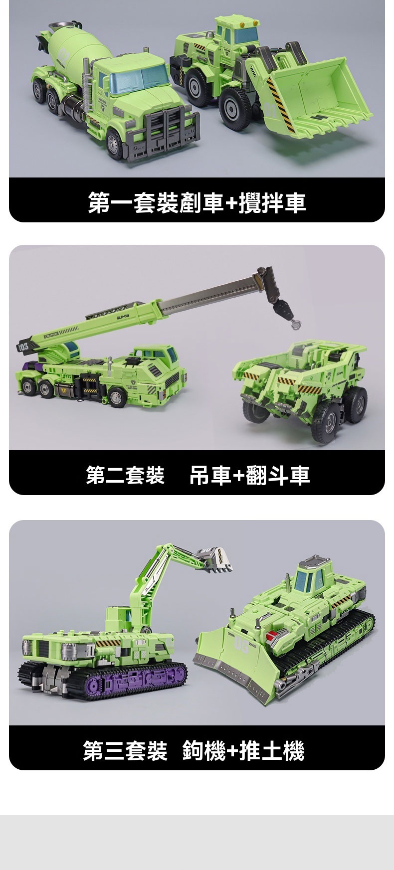 三套绿色合体装, 第三套装钩机+推土机, 第二套裝吊車+翻鬥車, 第壹套裝鏟車+攪拌車