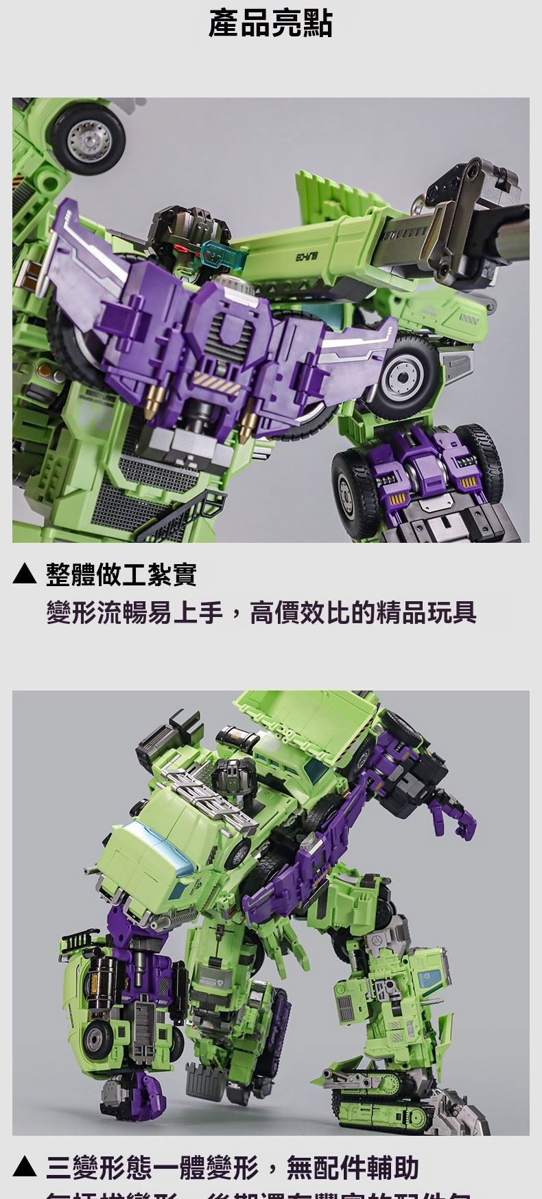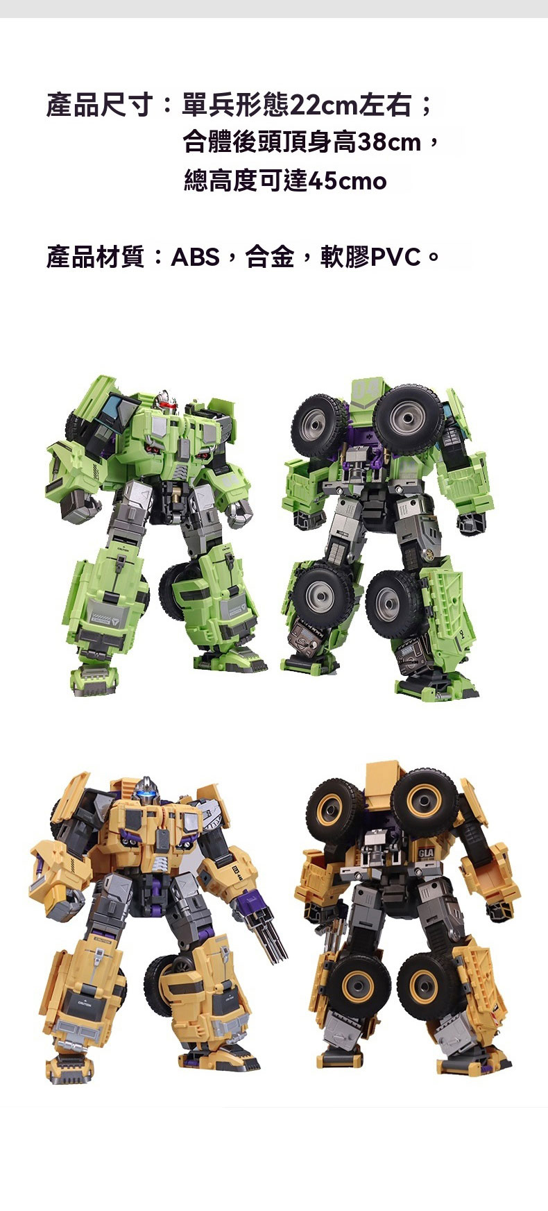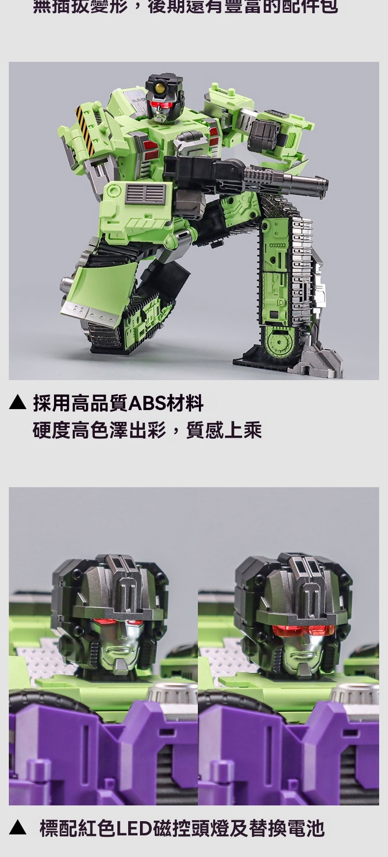 三套绿色合体装, 第三套装钩机+推土机, 第二套裝吊車+翻鬥車, 第壹套裝鏟車+攪拌車
