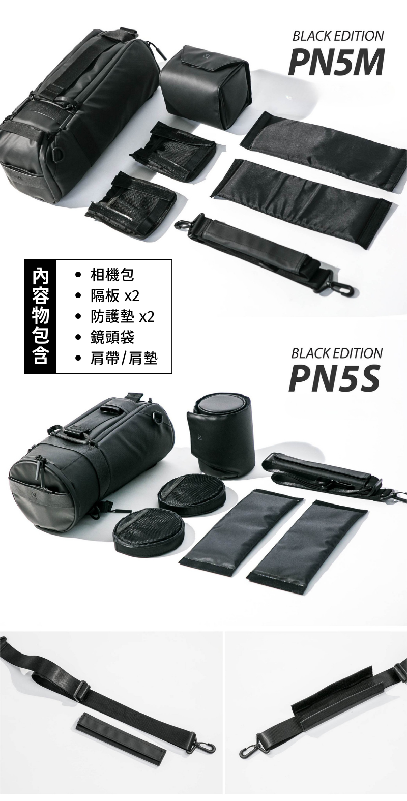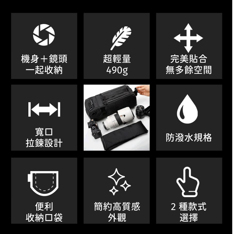 - 包1:專為機身與單顆鏡頭設計,方便快速取用。