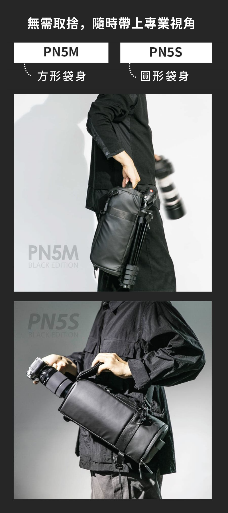 A:單眼相機因為有五棱鏡突起,建議選擇上方空間較寬的 PN5M(方形),取放更方便。無反相機則兩款都能輕鬆使用。