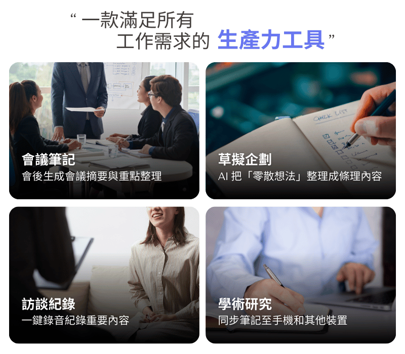在高效的工作節奏中,真正優秀的工具不只是記錄,而是要能夠幫助思緒加速、提升辦公產能。