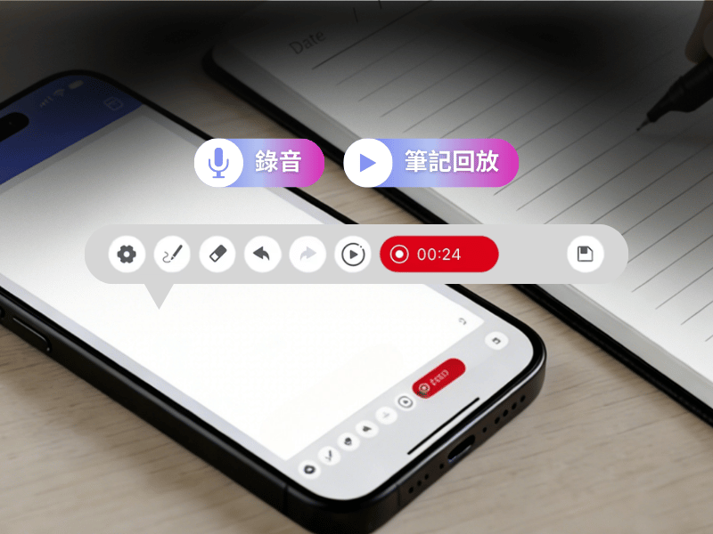 可透過筆記本上或 APP 中的錄音鍵即時紀錄與回放重要語音