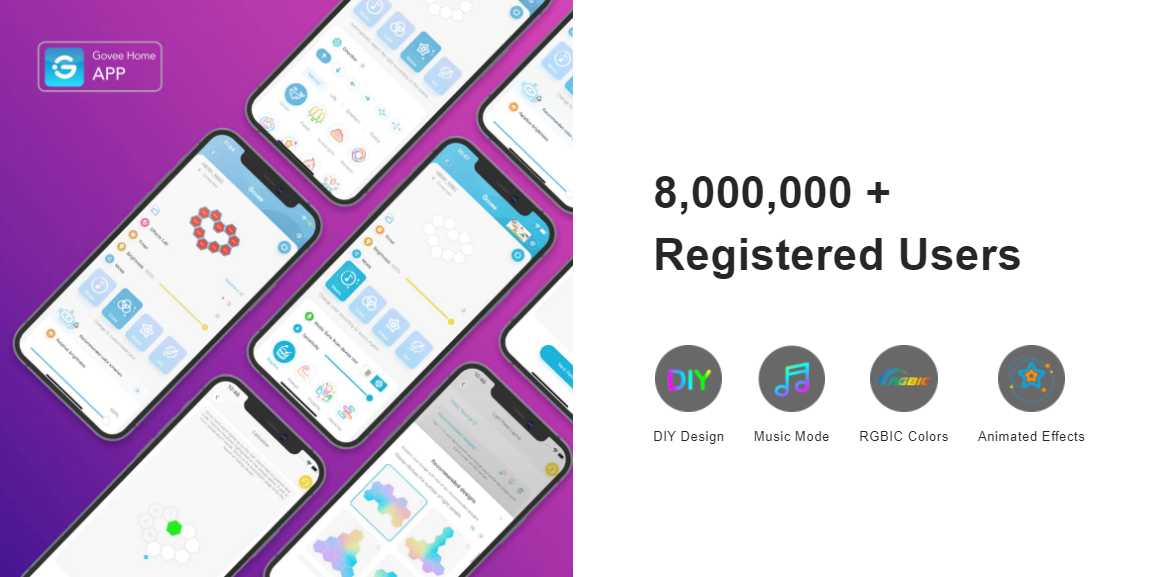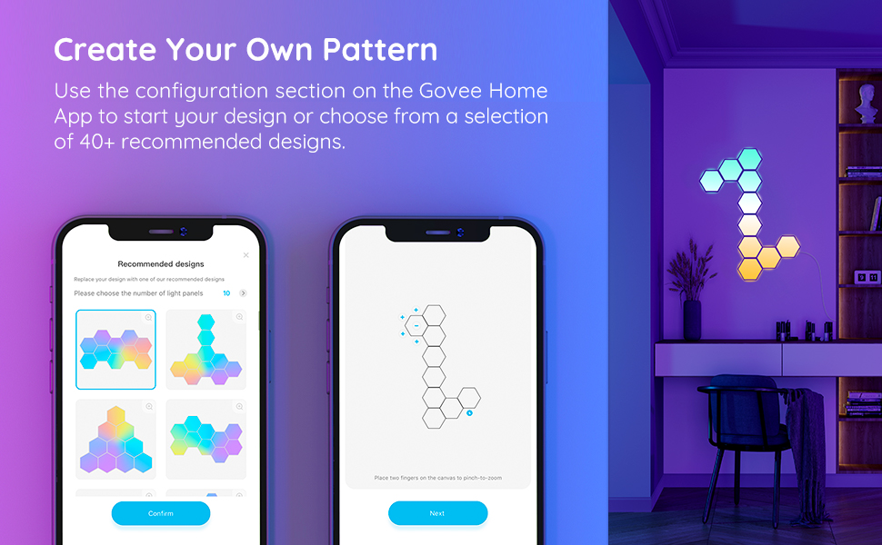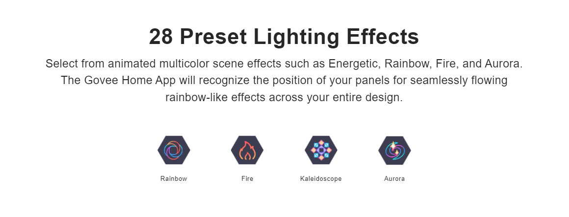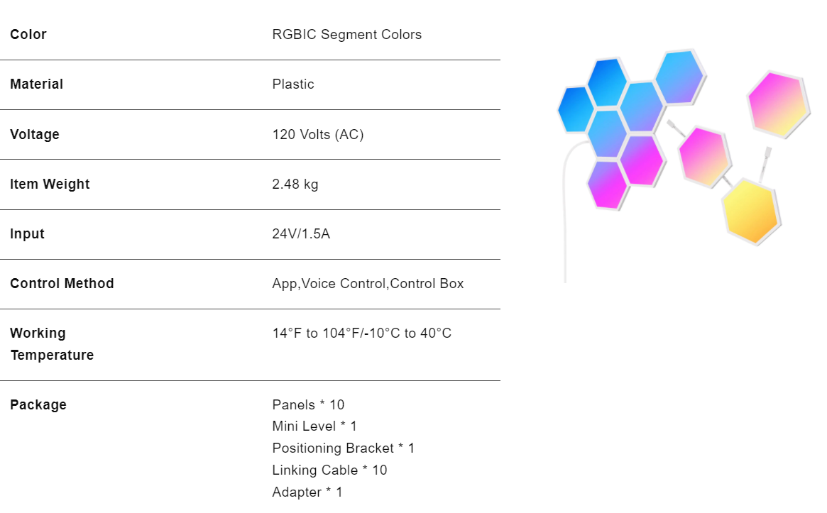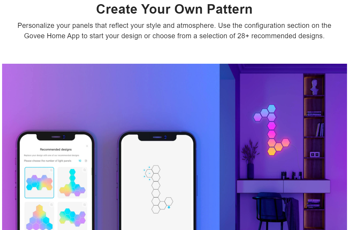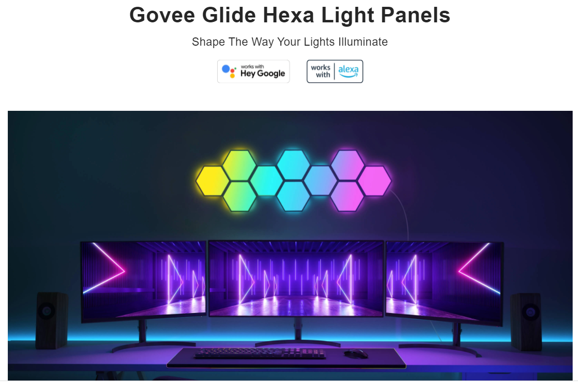 Govee Glide Hexa Light Panels 由 10 個 hpanels 組成,可以分類成各種形狀。它可以使用您最喜歡的語音助手(如 Alexa 和 Google Assistant)以及 Govee Home 應用程序進行控制。您甚至可以自定義您的設計、效果、顏色等。