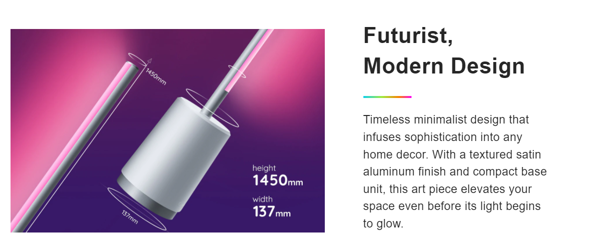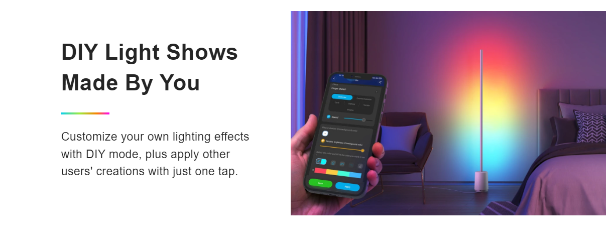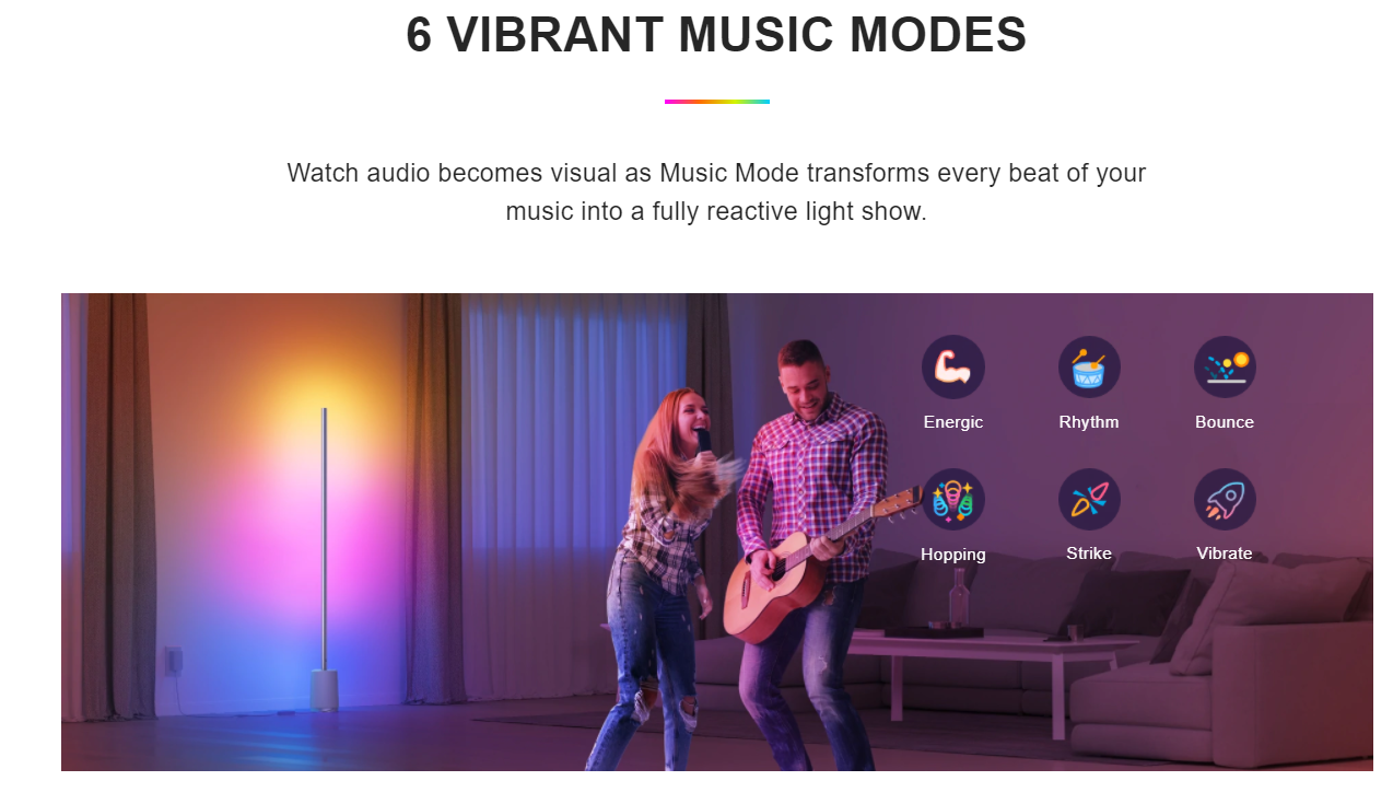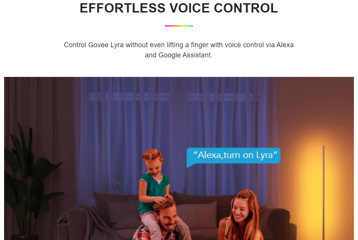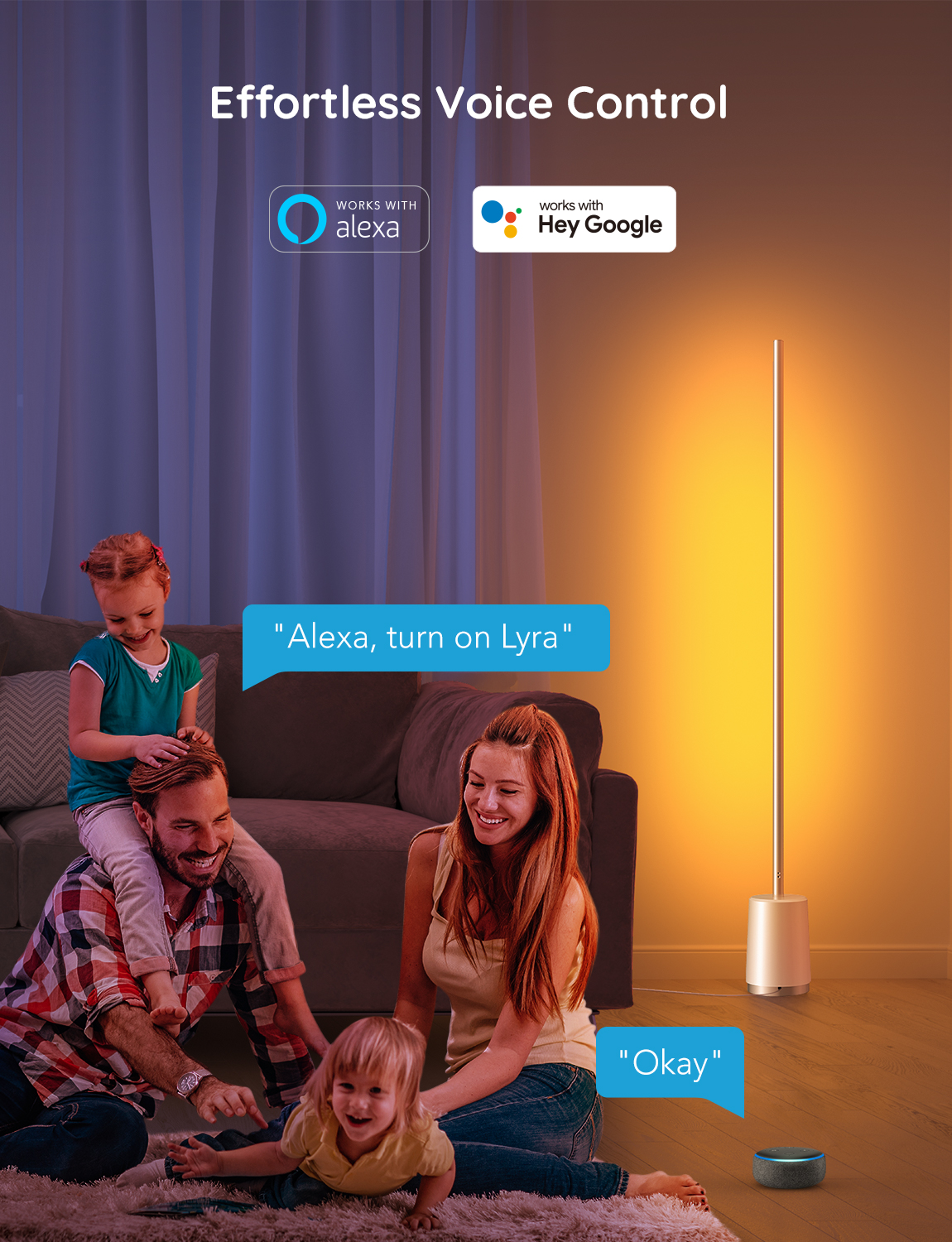 這款設計優雅、簡約的落地燈提供漫射照明,為您的家居生活空間營造令人驚嘆的環境。纖細的輪廓和令人印象深刻的彩色投影使 Govee Lyra 成為您家中令人愉悅的補充。