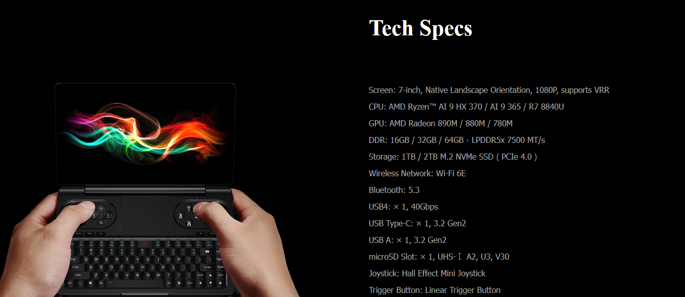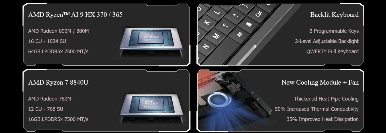 GPD Win Mini 2025 是一款便攜式遊戲掌機,搭載 AMD Ryzen™ AI 9 HX 370處理器,提供強大的性能和便攜性。