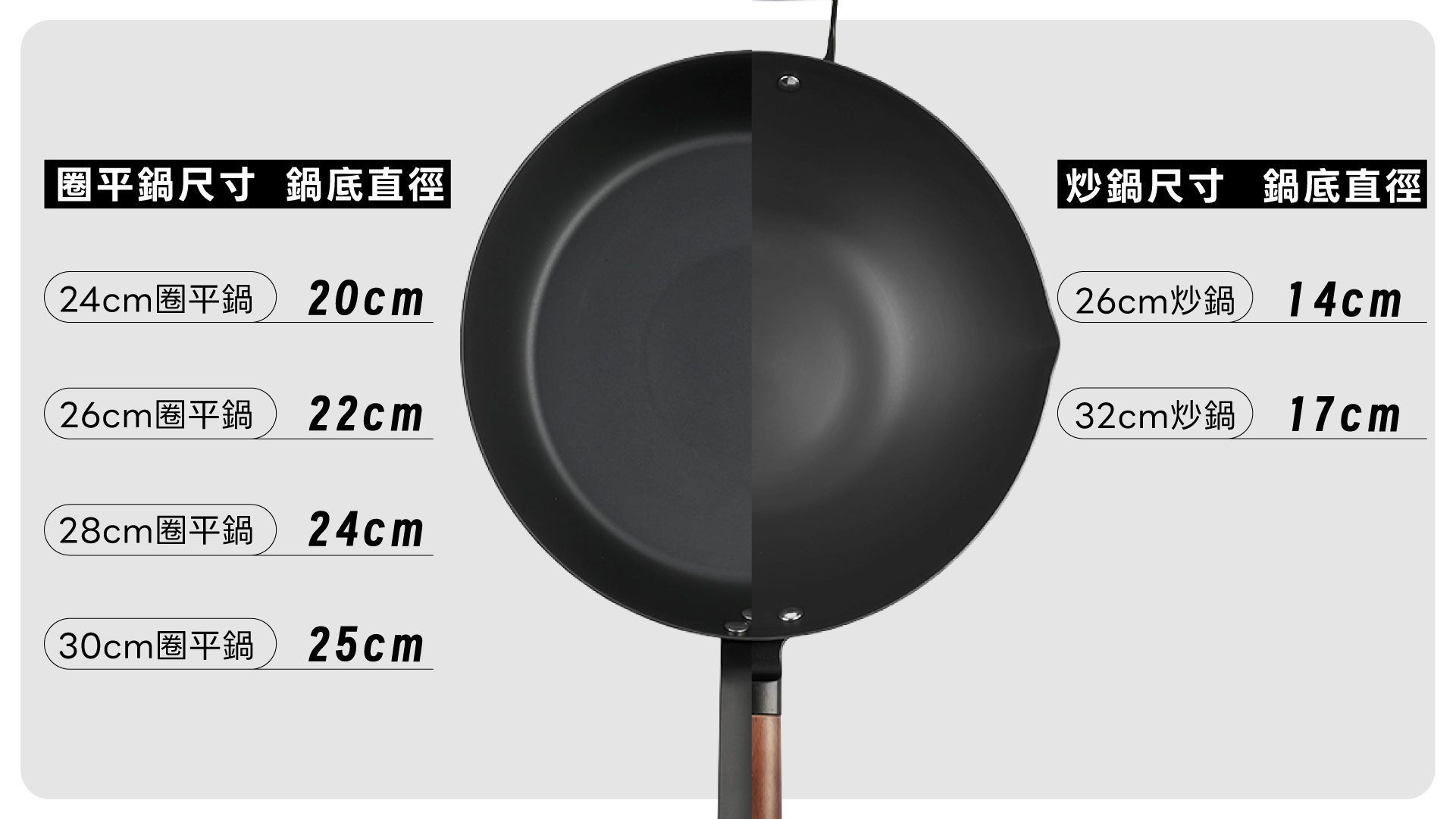 ▼各尺寸鍋子與鍋底尺寸對照: