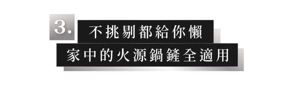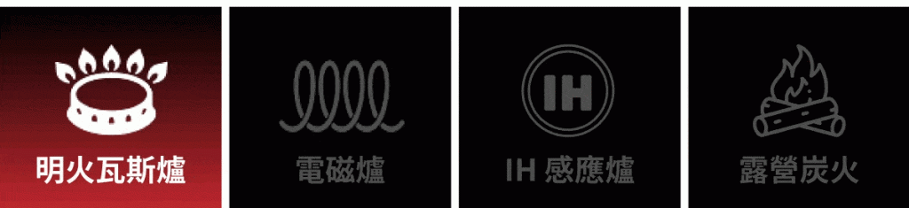 A:GUSTO 3.0 藍鋼料理鍋系列各種火源都適用!明火瓦斯爐、電磁爐、IH 爐到露營炭火一概隨時開伙沒問題。