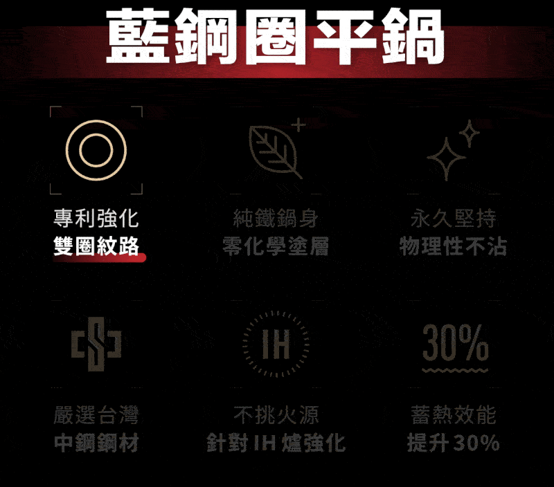 GUSTO 藍鋼圈平鍋是專為現代料理需求打造的高效能平底鍋,結合台灣中鋼原料與 50 年製鍋工藝,採用專利雙圈鍋底設計,全面解決 IH 爐使用時鍋具變形與熱傳導不均等問題。免開鍋、無化學塗層,直接使用更安心;極厚 2.0mm 鋼板蓄熱力優異,煎炒皆能爆出鍋氣。從爐具到烤箱都能使用,煮菜自由度大提升,是兼顧健康、安全與實用性的萬用鍋具首選!