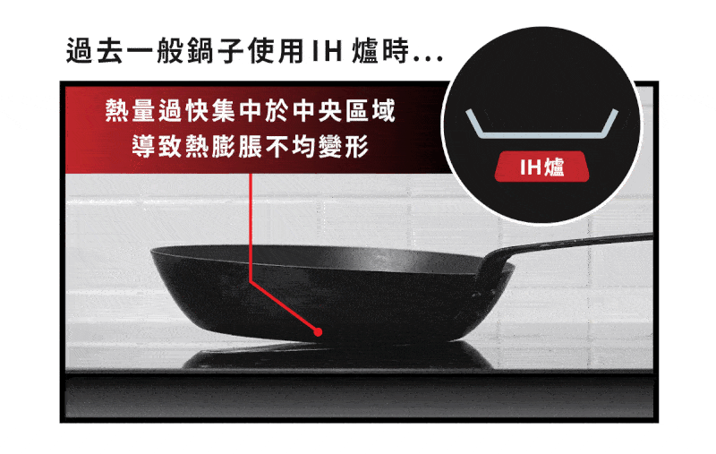 A:GUSTO 3.0 藍鋼平煎鍋特殊工法雙圈壓製,能耐熱衝擊,經 IH 爐集中熱高壓,鍋面依舊不易變形;另外,同步提升熱傳導均一,輕易煎炒恰恰爆香氣、避免食材易燒焦。