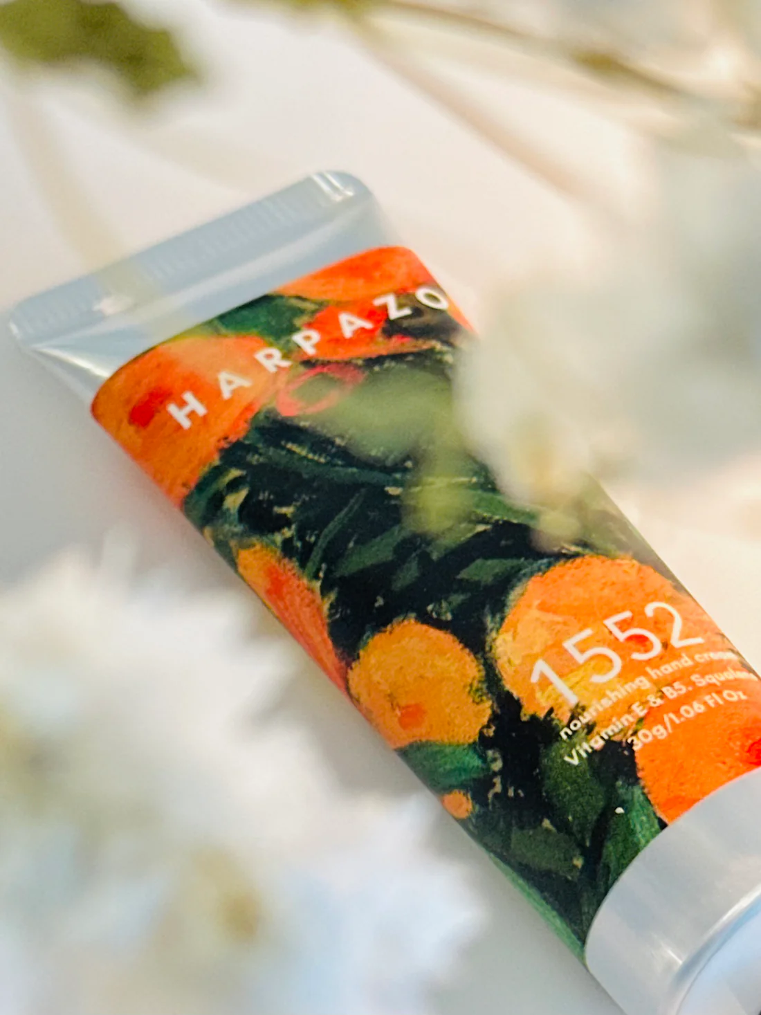 1552旅行裝護手霜蘊含著Harpazo 1552香水的桂花烏龍氣味,含有Vitamin B、Vitamin E、角鯊烯等美容成分,為乾燥的肌膚提供深層滋潤和呵護。尺寸非常適合放在任何地方。你可以把護手霜放進包包裏、辦公桌上、車內或攜帶上機,因為你永遠不知道雙手甚麼時候需要補充水分。