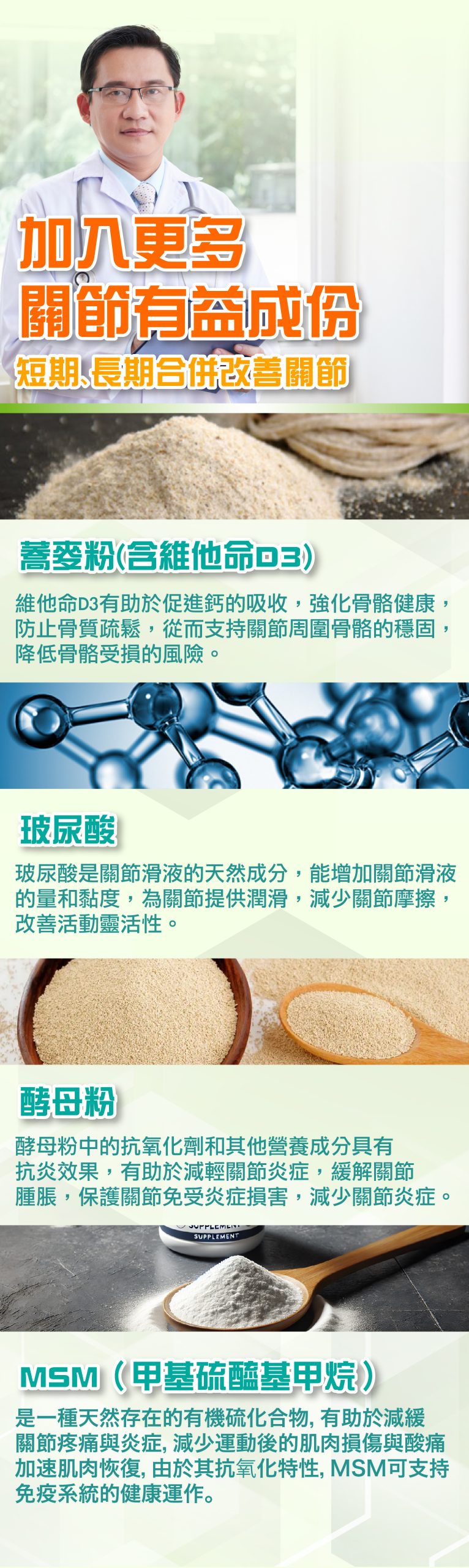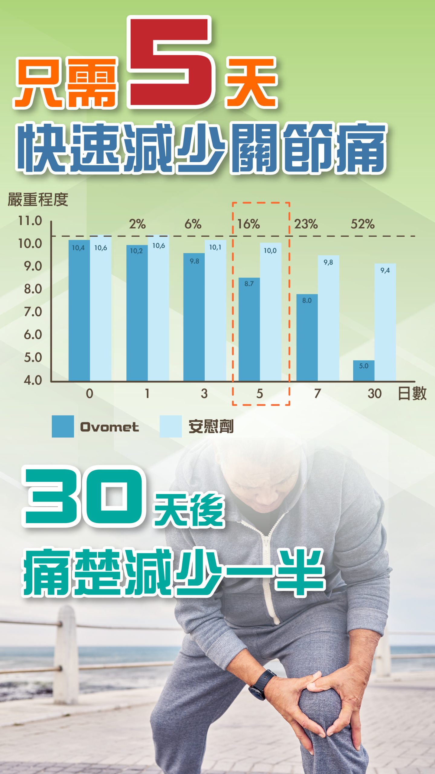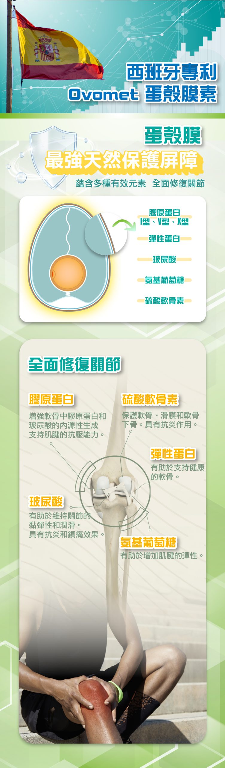 1. 減輕關節疼痛與僵硬:專利Ovomet®蛋殼膜和玻尿酸有效修復軟骨,快速舒緩關節不適。