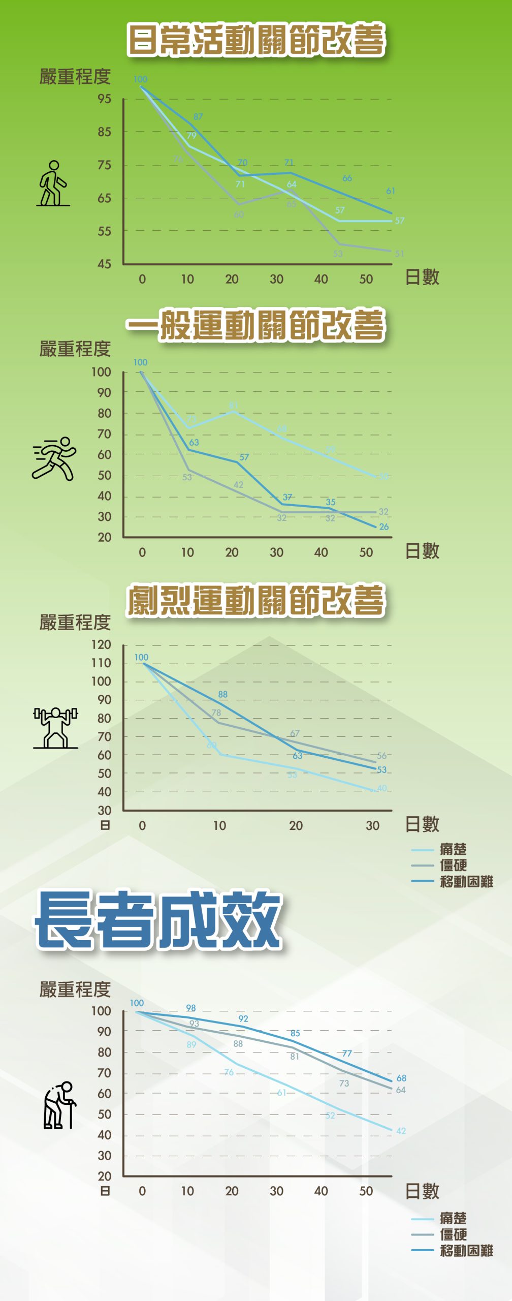30天顯著改善:活動靈活性提高,關節不適顯著減少。