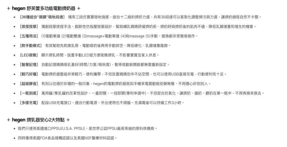 1 x 電動雙邊擠奶器 (*建議最佳使用模式,可先從強度5開始)