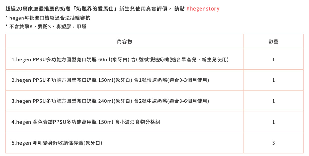 品名:【hegen】 PCTO 祝賀新生經典奶瓶安心禮|臻愛系列