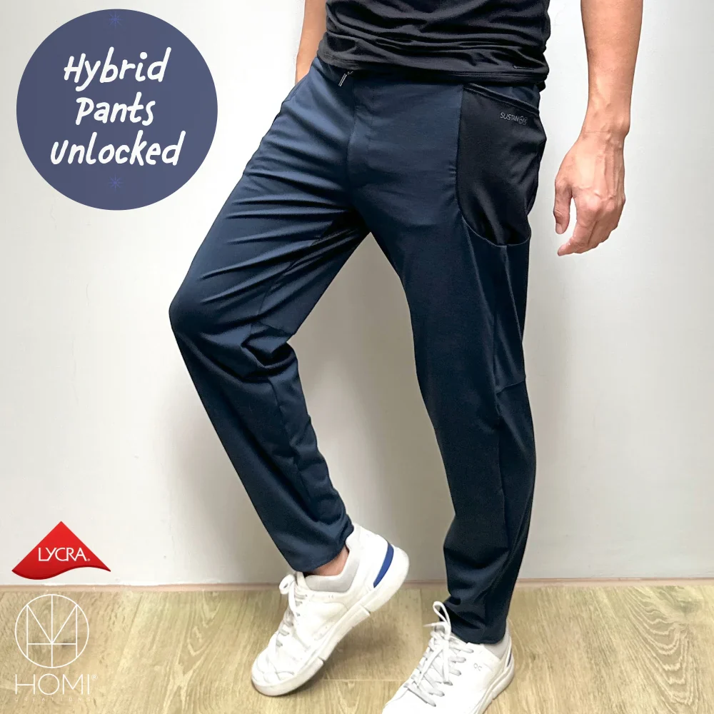 為何稱為 Hybrid 長褲?雖然定位為休閒長褲,定位類似ㄧ般秋冬天大家穿的休閒運動褲,棉褲,但是因為此次材質的顏色調校與布料挺度,讓它穿起來也是ㄧ條可以上班通勤,好看的長褲