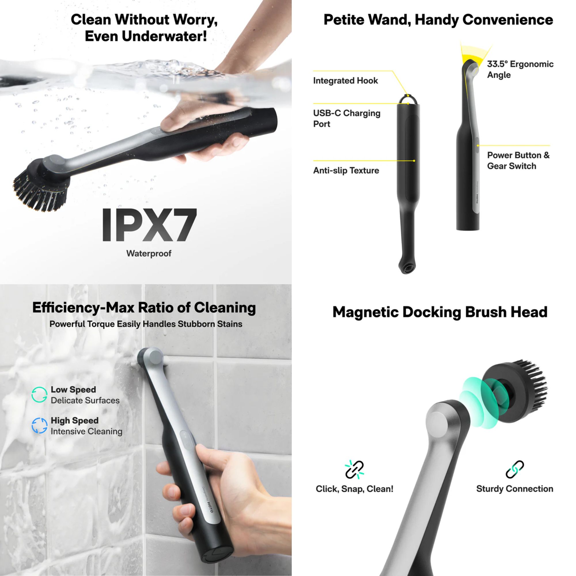 12 Magnetic Brush Heads Included: Comes with 12 durable magnetic brush heads engineered for tough stains and tight corners—enhanced elasticity and wear resistance for extended use.