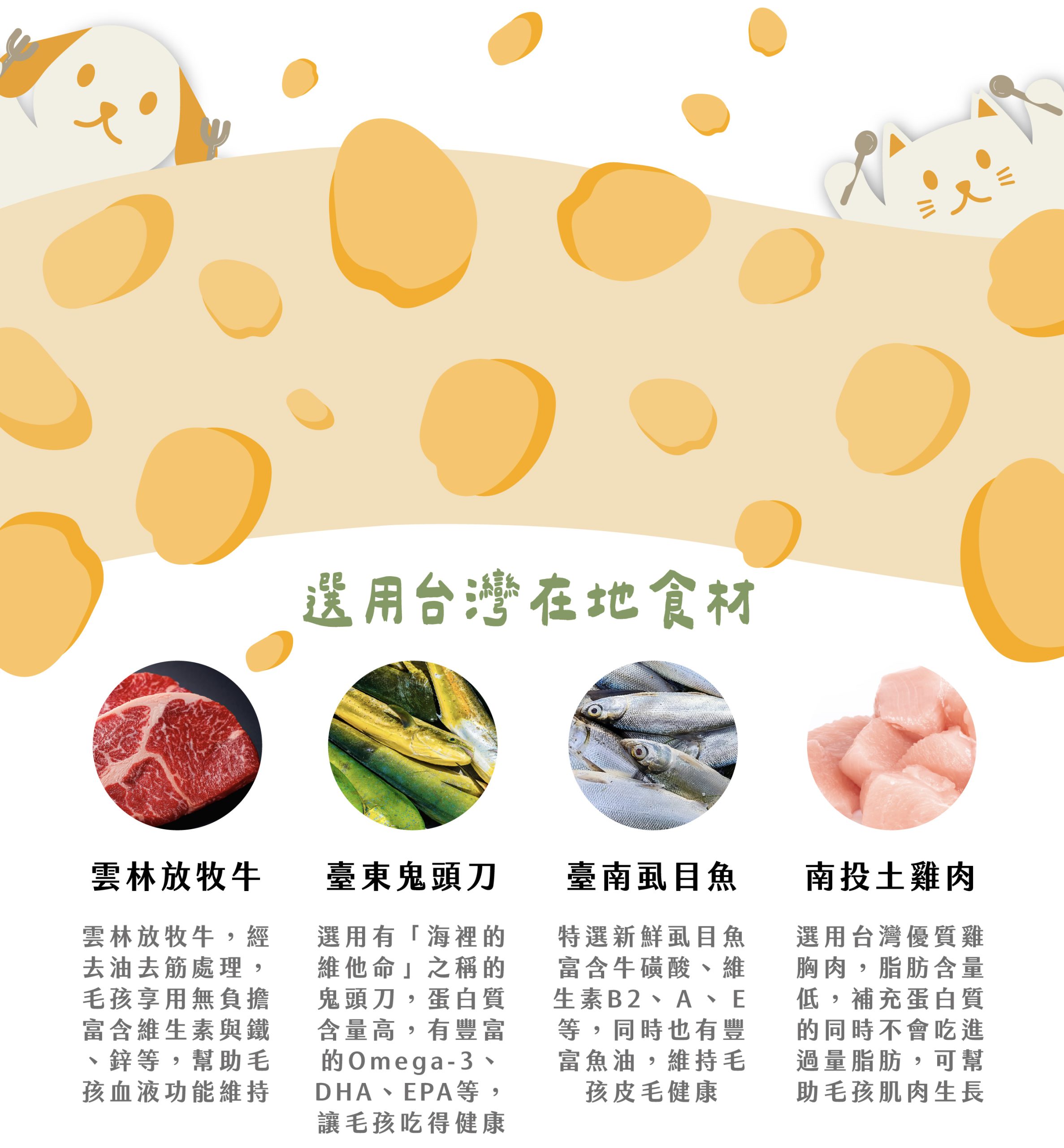 選用本地優質食材,為毛孩打造高標準嘅安心美味。