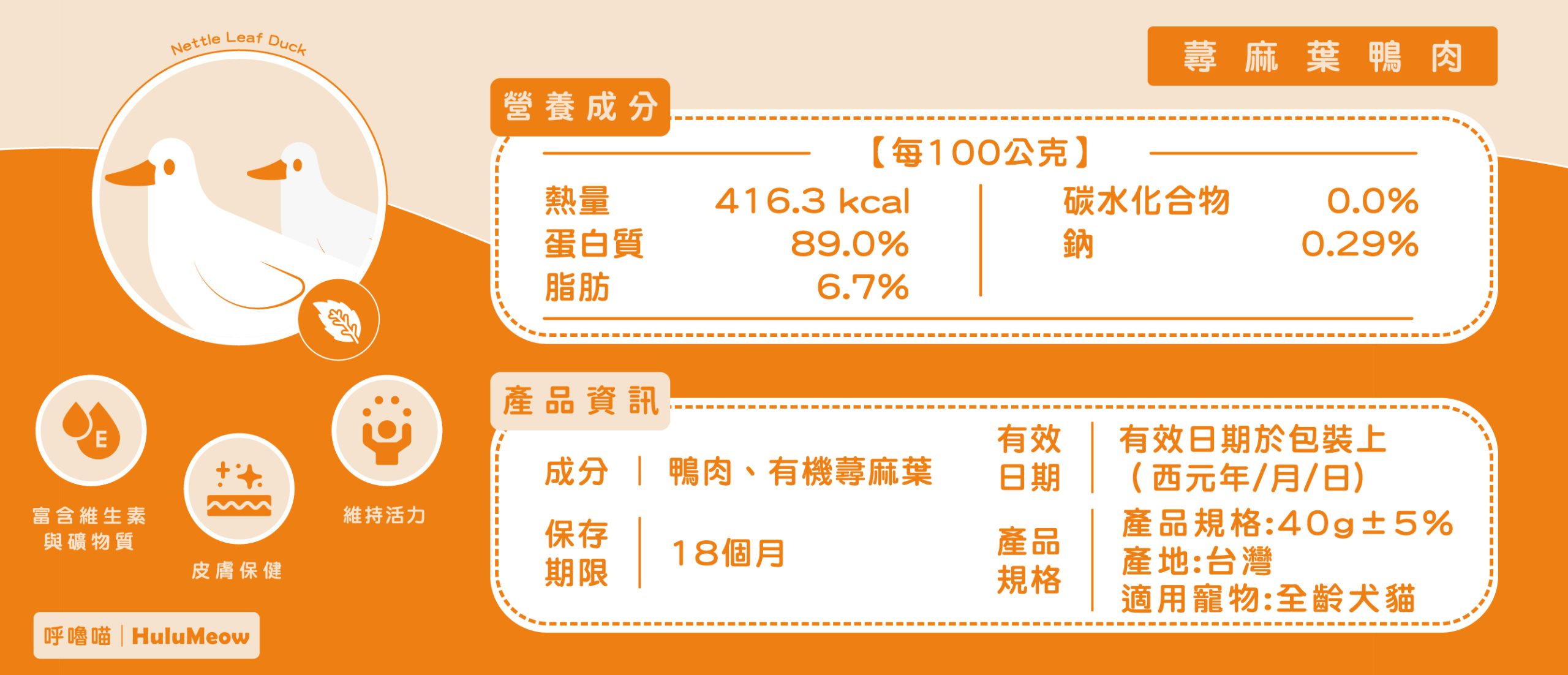 嚴選屏東高質鴨肉,蛋白質豐富,幫助毛孩吸收到足夠嘅氨基酸,保持毛孩健康同活力。