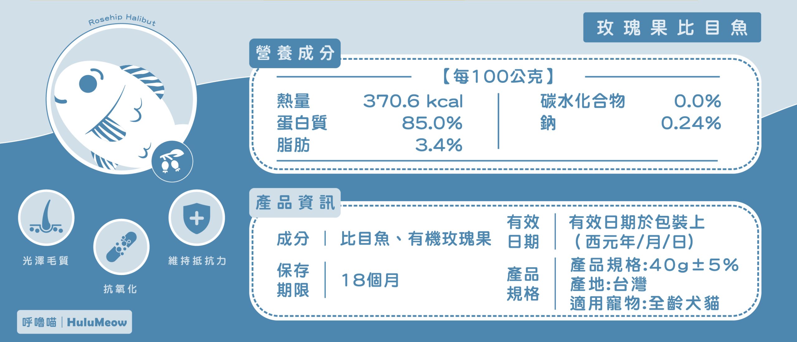 用新鮮比目魚製成,富含優質蛋白質同不飽和脂肪酸,有助於保養皮毛同維持免疫力。