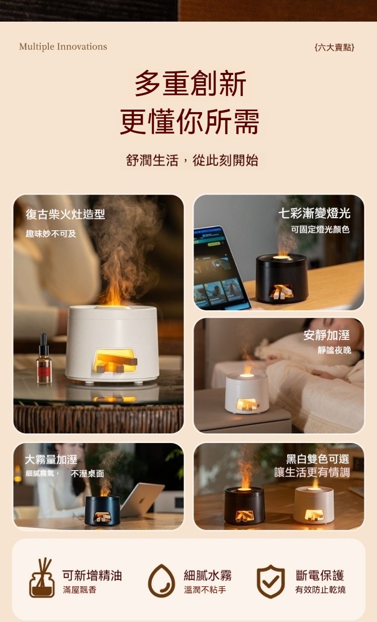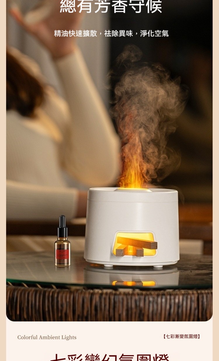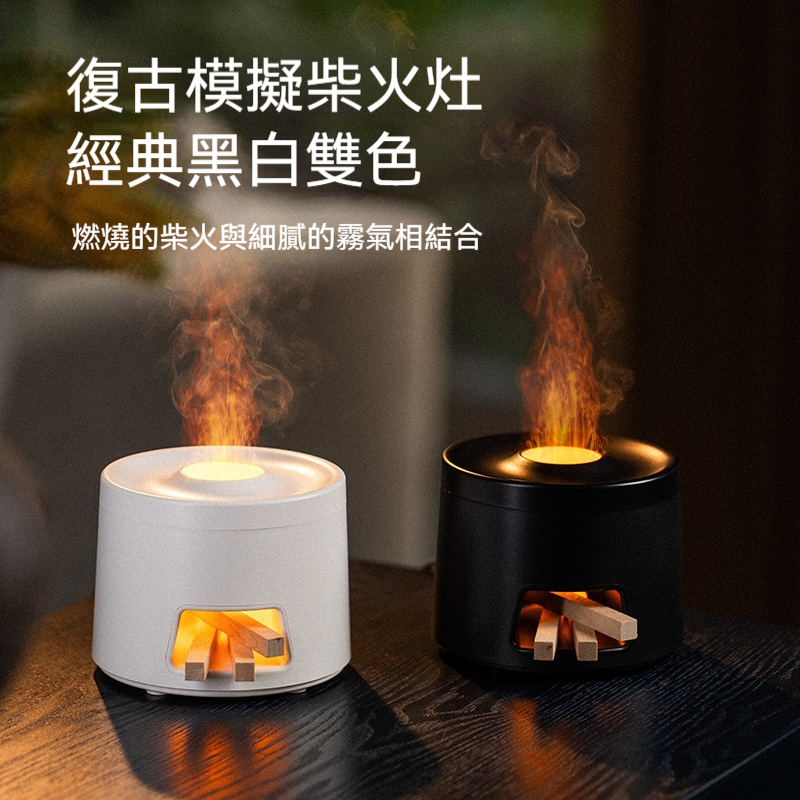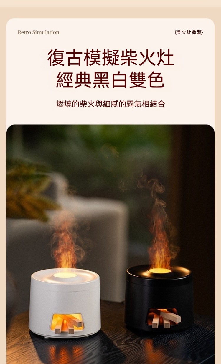 【沈穩黑•柴火竈香薰機/仿真火焰】, 【簡約白•柴火竈香薰機/仿真火焰】