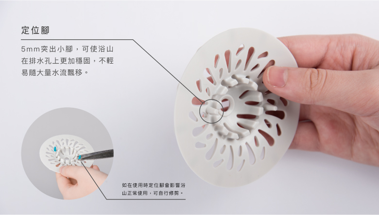 ▍ 底部的定位腳設計,讓浴山不輕易隨大量水流漂移,可是使用需求裁剪,提升使用彈性。