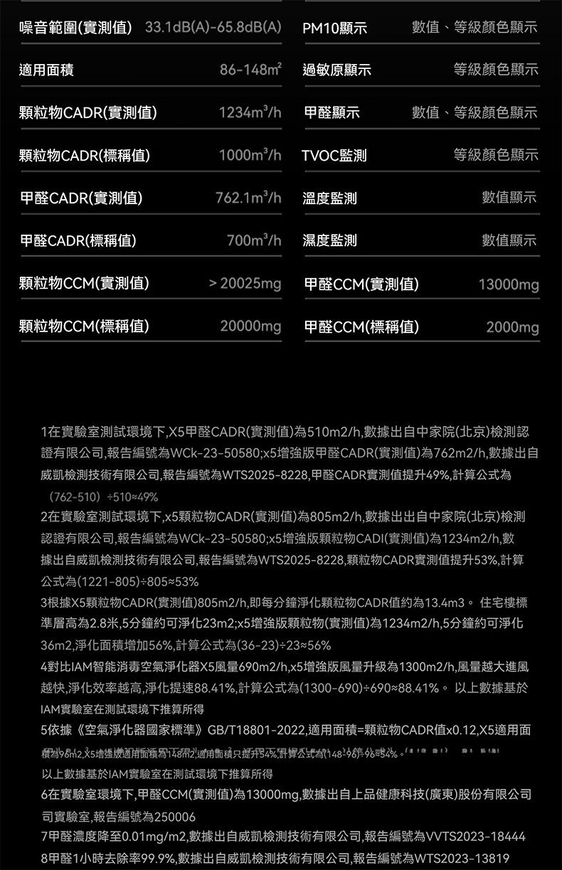 顆粒物CADR(標稱值):1000m’/h