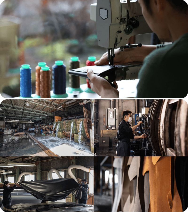 A: 每一件都是日本職人與工坊合作手工製作,產地是日本,並選用日本知名皮革產地姬路的牛皮皮革。