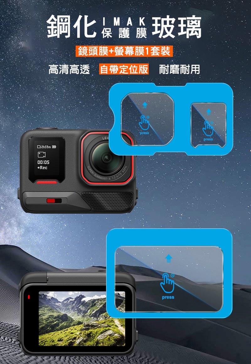 搶先留言 “Imak Insta360 Ace Pro / Pro 2 鏡頭+螢幕玻璃貼(自帶定位版) 奈米吸附 (品牌直送)”
