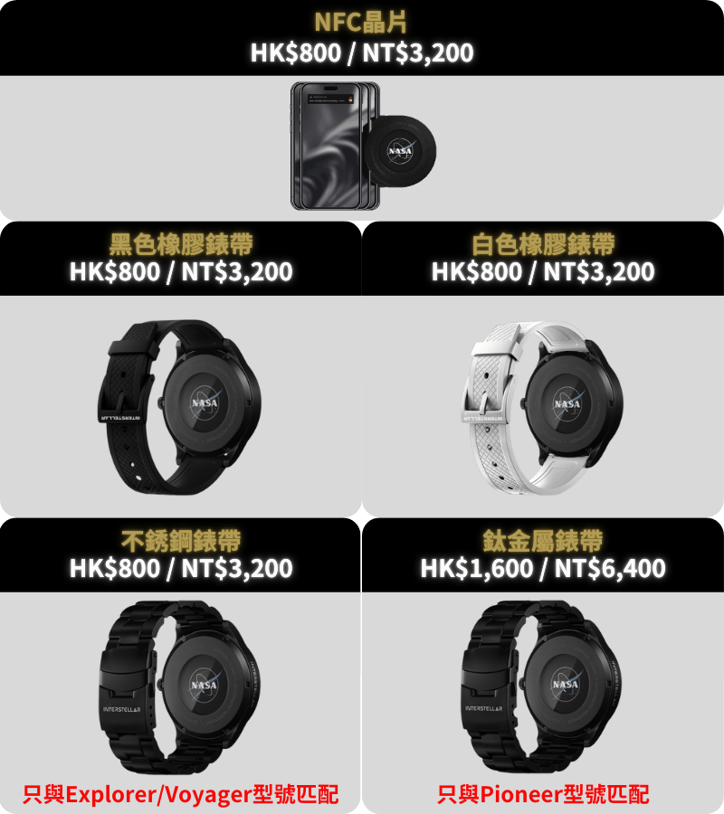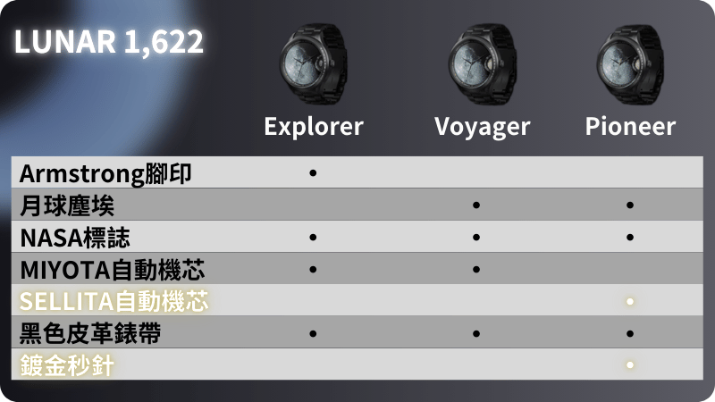 *Lunar 1,622預設為「黑色皮革錶帶」,若換購以下錶帶,將以換購之錶帶製作,原先預設之黑色皮革錶帶則不會附上。