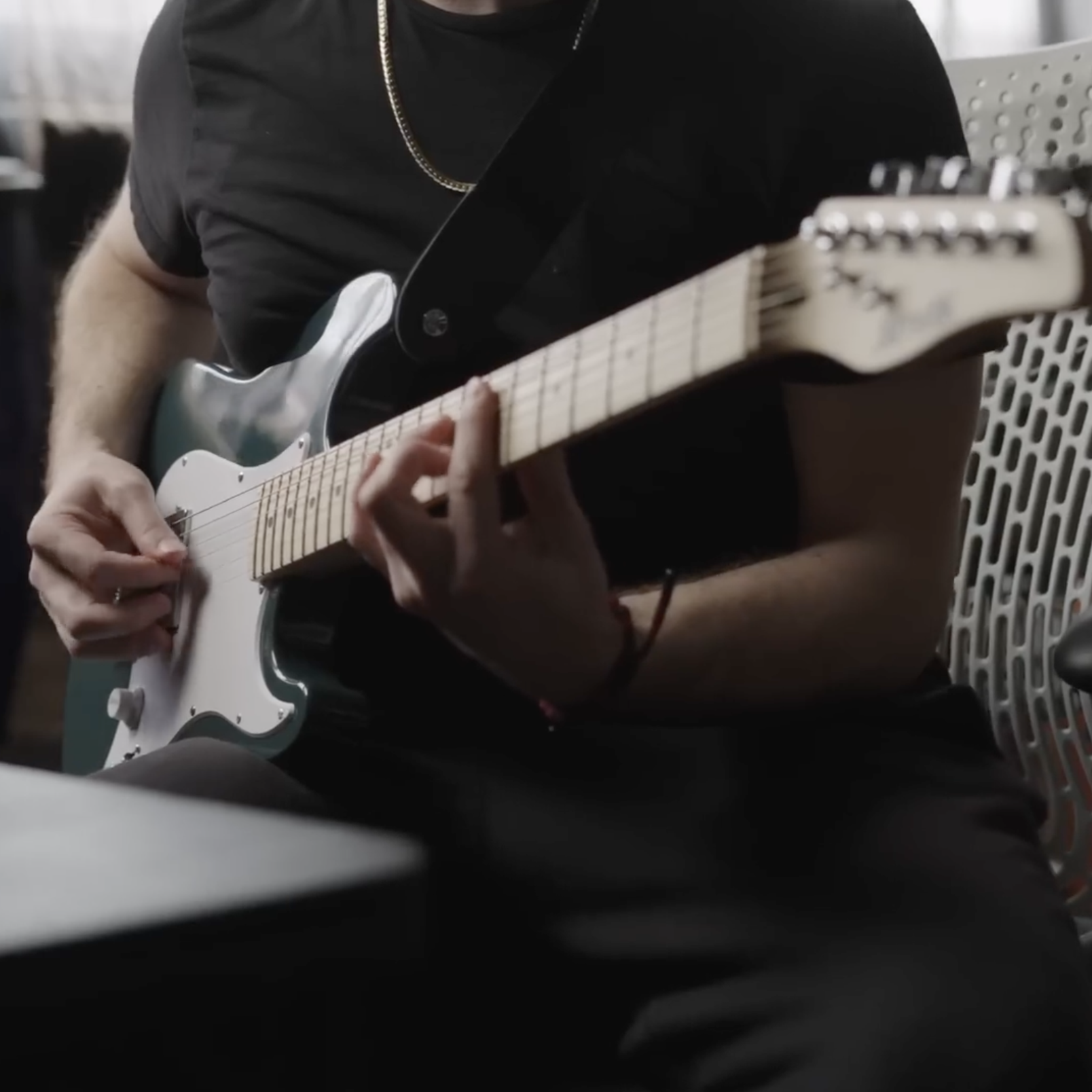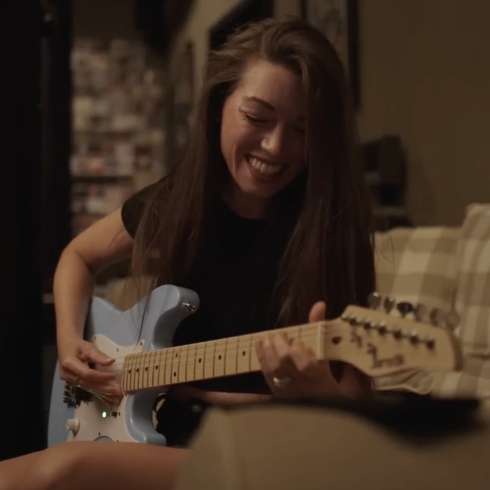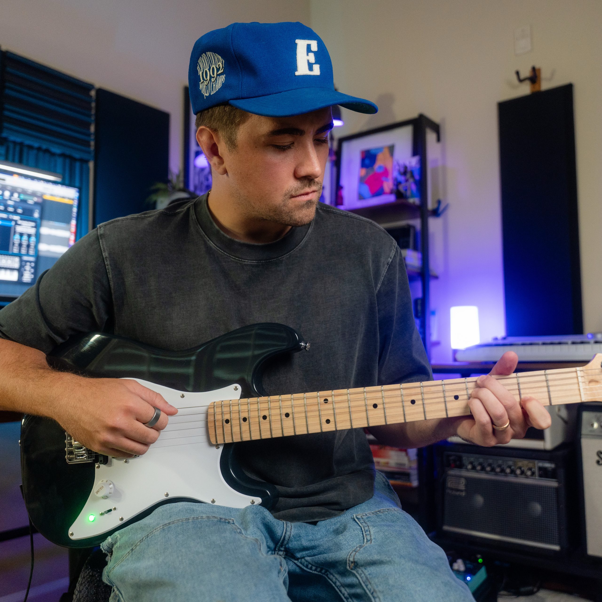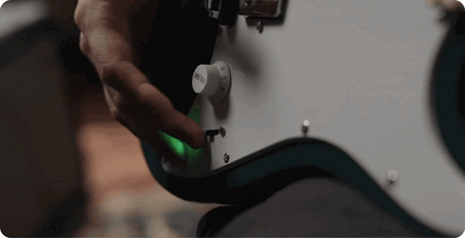 - 它是一把真實的電吉他。配備 22 琴格、單雙線圈拾音器與音量控制旋鈕——使用 1/4″ 輸出孔連接音箱、錄音介面或效果器踏板。