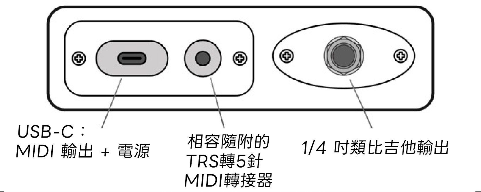 - MIDI 切換開關:機身內建 3 段選擇器(單聲道、多聲道、MPE)