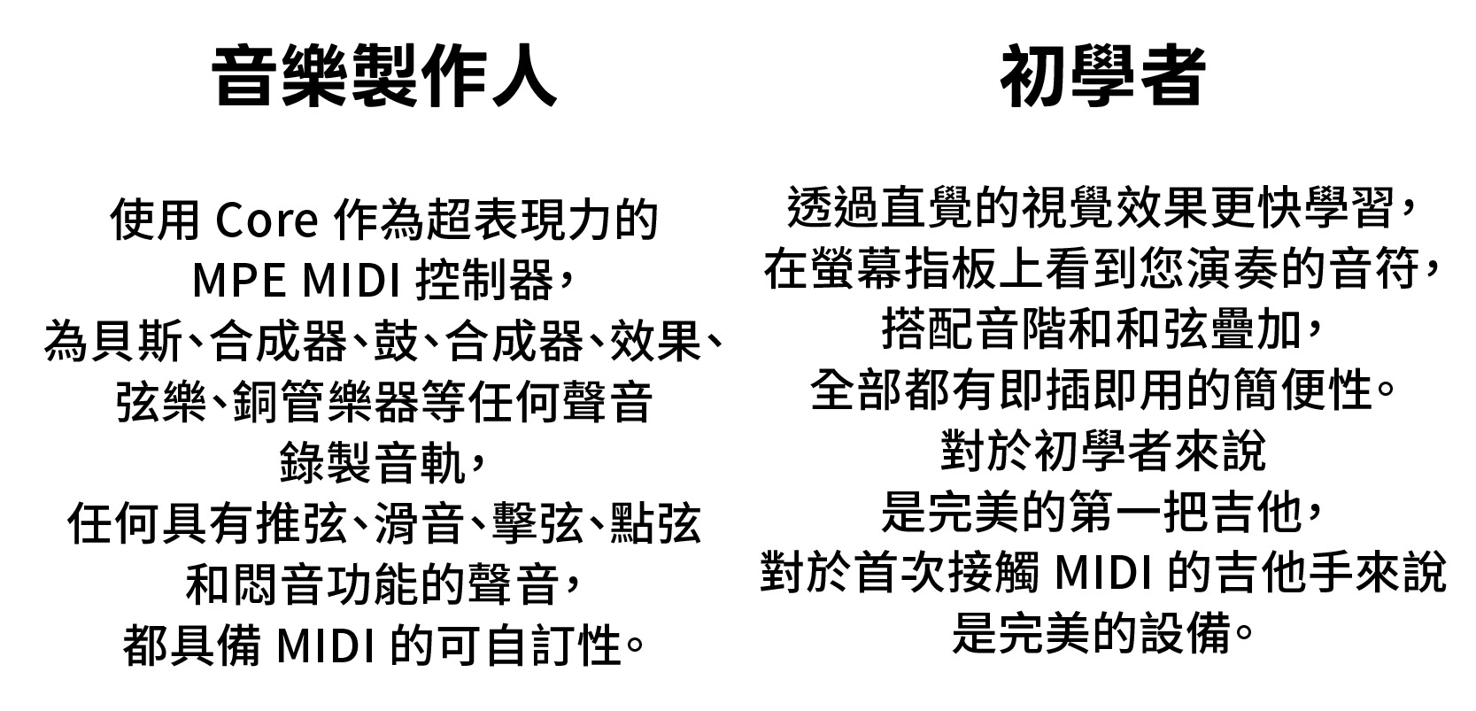 Jamstik 運用 MIDI 複音表情(MPE)技術,以無與倫比的精準度捕捉吉他演奏的自然細節。