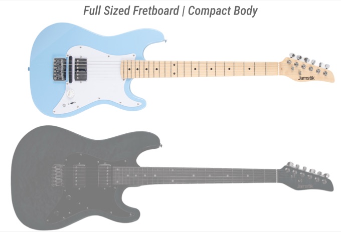 Jamstik Core(上圖)長 37 吋,相較於標準電吉他(下圖)的 40 吋