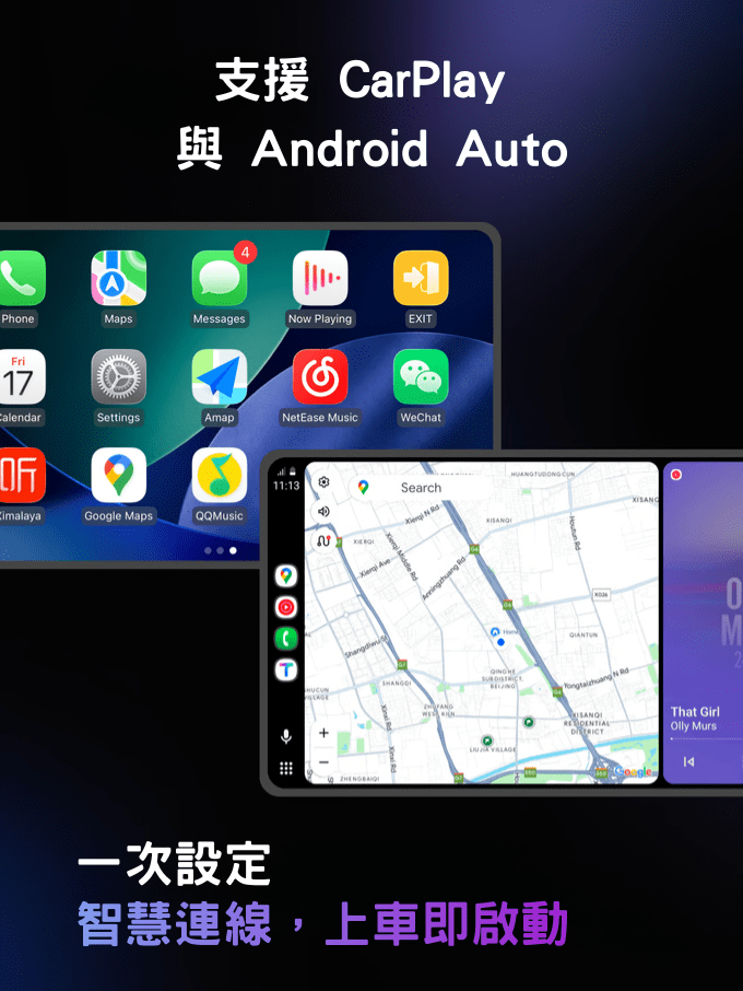 A: 支援有線與無線 CarPlay、Android Auto,並支援 Miracast 與 AirPlay,連接方式靈活,操作順暢。