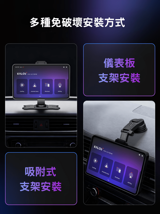 除了內建應用程式之外,KALOS Pad 更被設計為你的終極內容中樞。它支援完整的螢幕鏡像功能,包含 AirPlay 與Miracast,讓車內每位乘客都能將手機中的照片、影片或遊戲直接投放到大螢幕上,共享沉浸式的互動體驗。