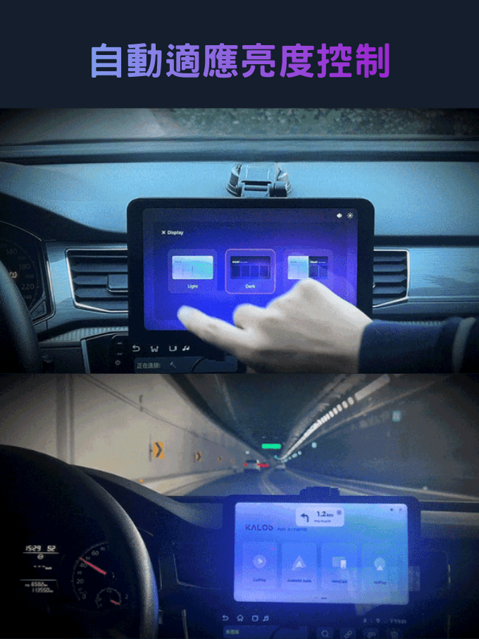 A: 內建光源感測器,可依環境自動調節亮度,進出隧道或夜間行駛時能有效減少眼睛疲勞。