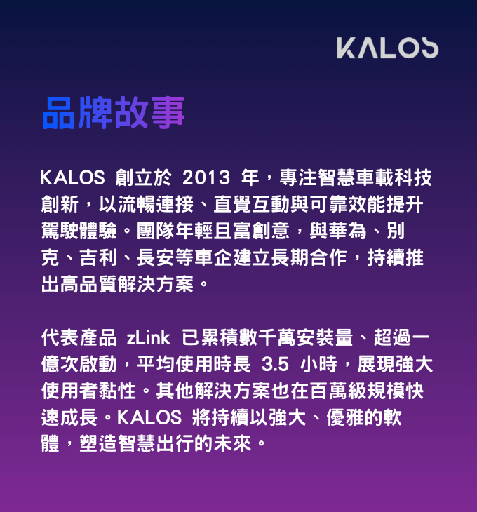 與一般消費型電子產品不同,KALOS PAD 採用強大的汽車級晶片。這款專為車用設計的顯示器,能提供快速且穩定的效能,同時具備最佳化的穩定性與更低的功耗。系統針對即時操作而設計——無論是開啟導航、載入娛樂應用程式,或啟動倒車影像,螢幕都能流暢且高效地反應。透過符合汽車級標準,裝置能有效減少延遲與卡頓,確保車內體驗始終穩定可靠。