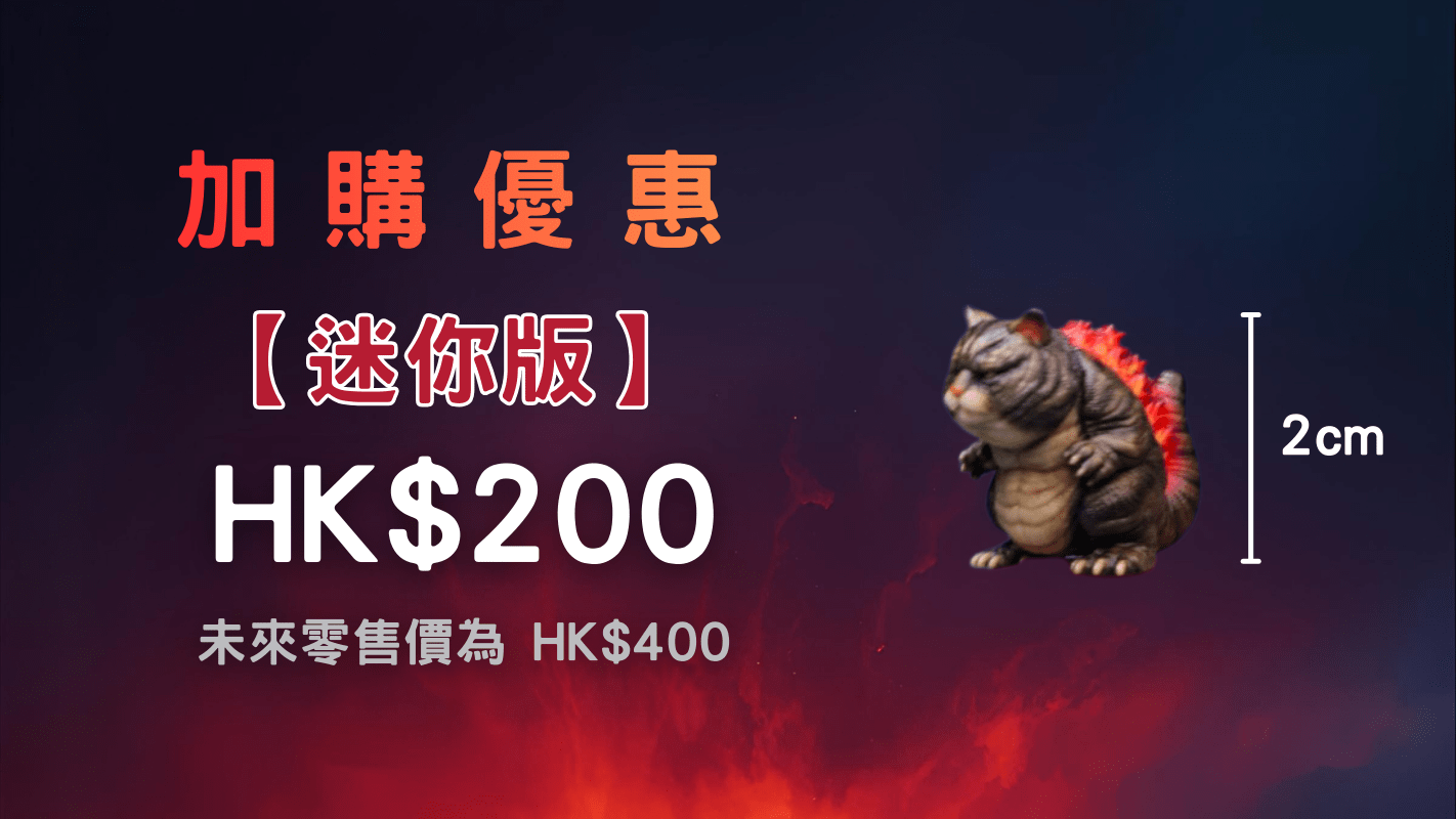 * 前 80 位下單的客戶,將獲贈限量迷你版 Kazzilla 貓斯拉 3D 模型一隻,並會與訂單寄出同日寄出 (2026年5月5日)。數量有限,送完即止。(已於12月17日18:10送完即止)