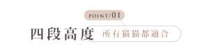 從6cm到13cm四段高度調節,從短腿貓到長腿貓,從幼貓到成年貓皆可找到最適合的高度。