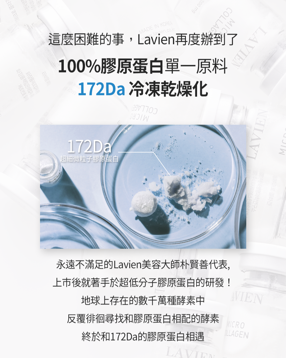 ▸超微分子 172Da,比市售膠原蛋白更小,吸收率爆表!