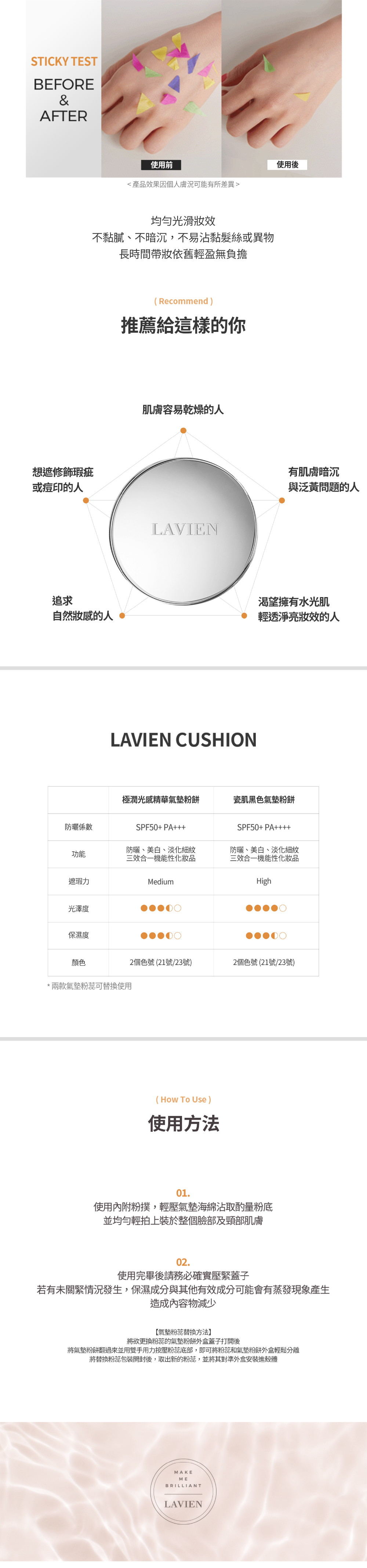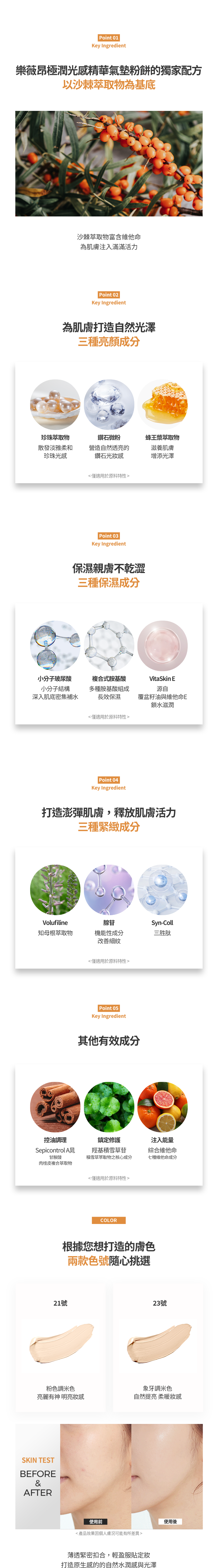| 色號 | No.21 LIGHT BEIGE, No.23 MEDIUM BEIGE |