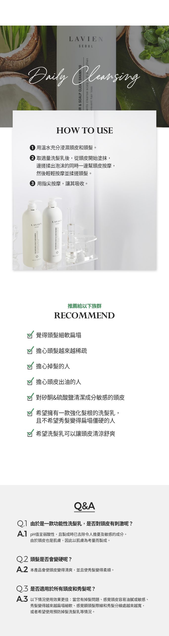 ▸使用天然潔淨成分-保護頭皮與秀髮健康