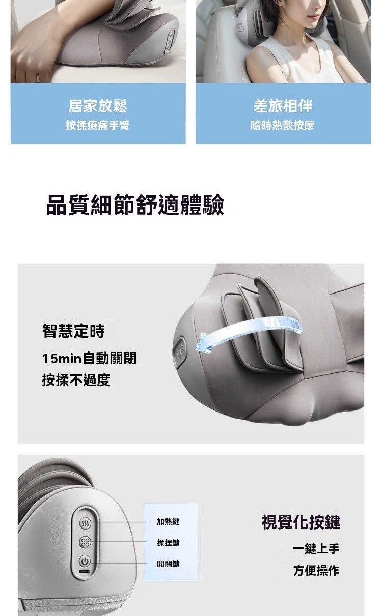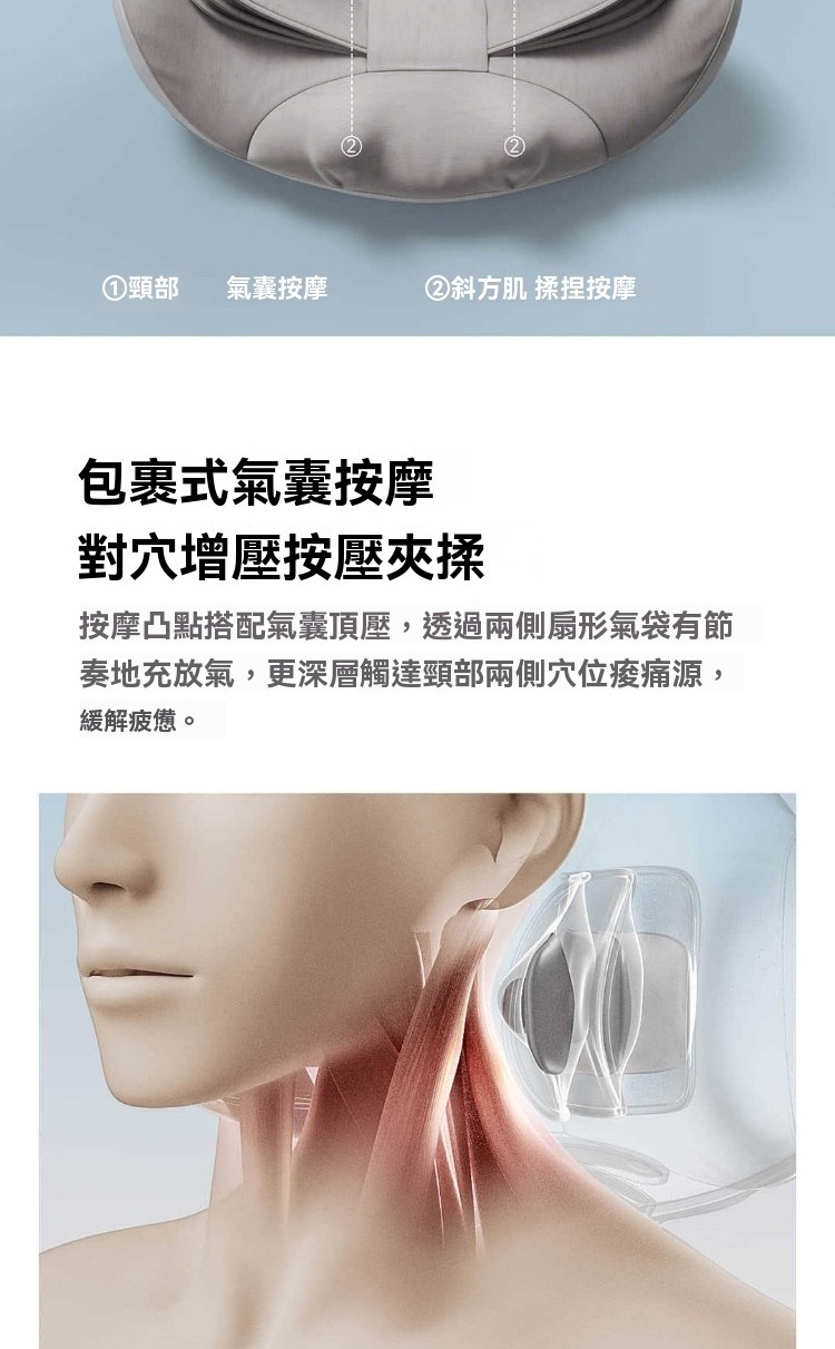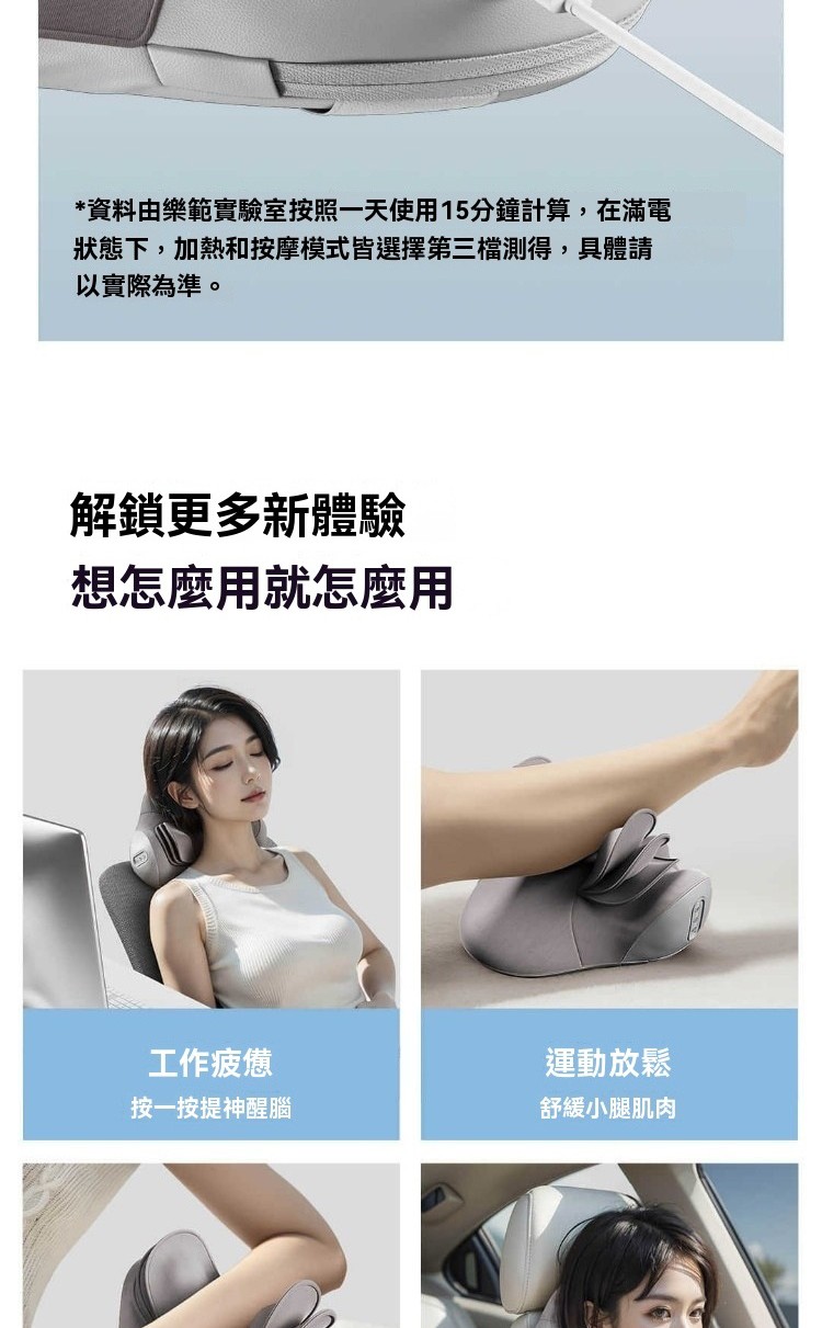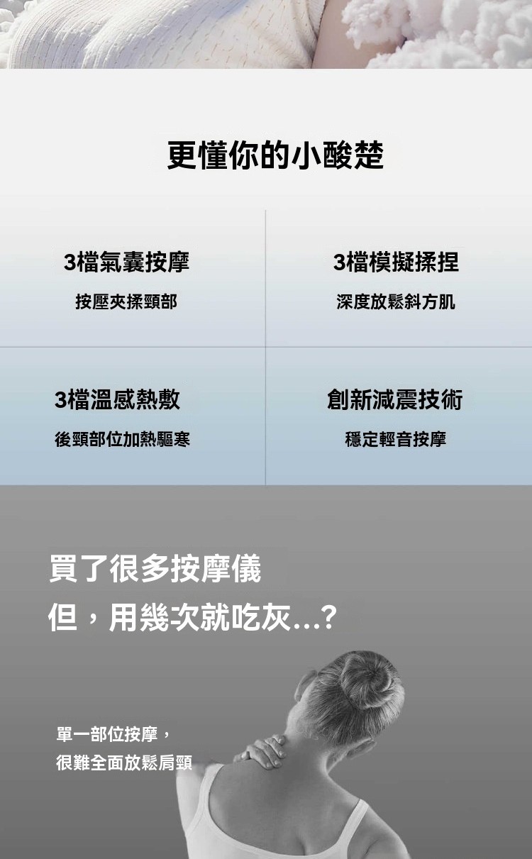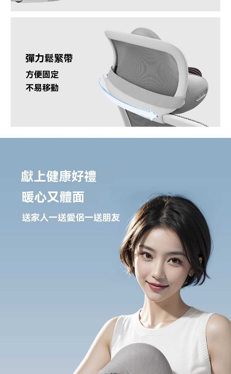四大特點👇🏻 1. 3檔氣囊按摩 2. 3檔温感熱敷 3. 創新減震技術 4. 高回彈舒壓海綿