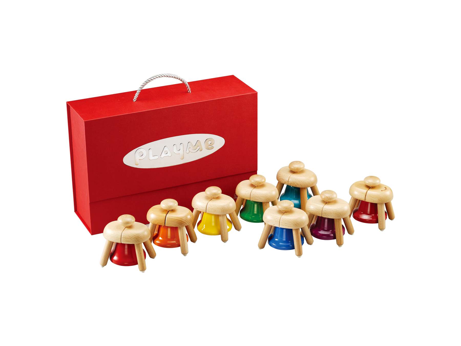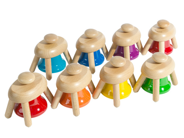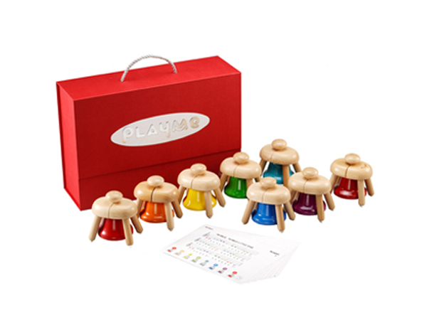 Pat Bells是一套8個以歐洲山毛櫸實木製造的手拍鈴,以彩虹七色代表C,D,E,F,G,A,B,C 八個音,配合以七色音符編寫的樂譜,可分別從聽、視、觸,三感訓練及培養幼兒對音樂的興趣與靈敏度,同時訓練幼兒的手眼與大腦協調。