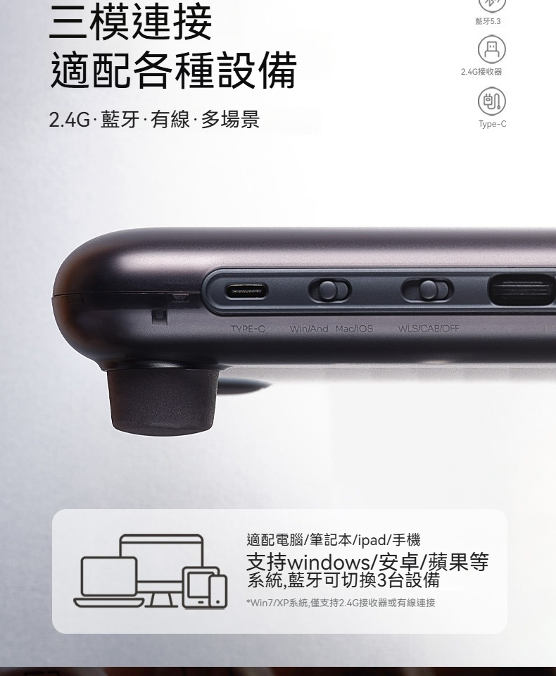 模式:藍牙模式(5.3)/有線模式/2.4G