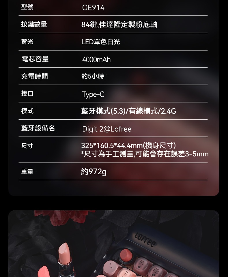 名稱:圓點囗紅三機械鍵盤lLipstick黑管