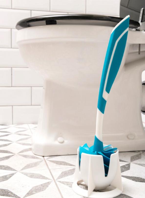 LooBlade 則藉著矽膠軟而具彈力的特性,輕刷時就能夠將汙漬刮除大半。