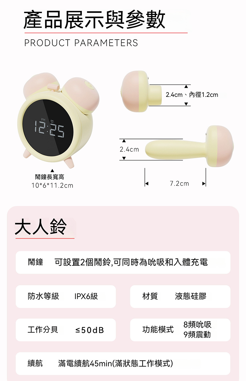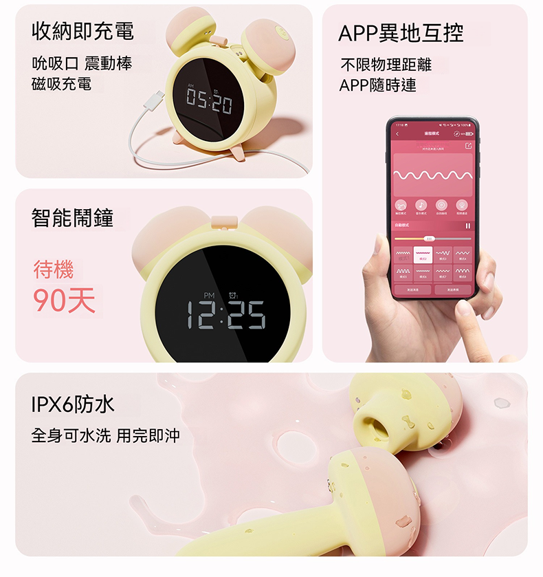 鬧 鐘可設置2個鬧鈴,可同時為吮吸和入體充電